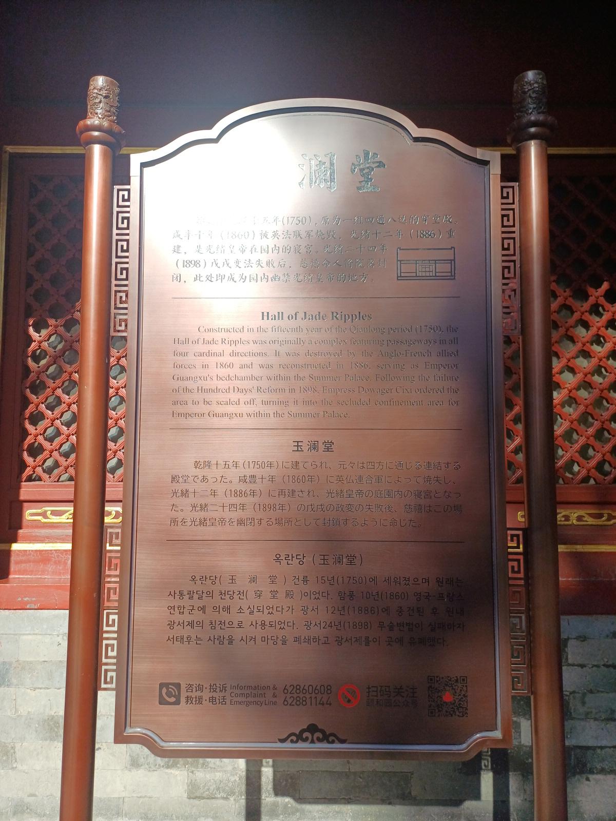 광서제는 겨울에는 중남해(中南海) 일대에, 여름에는 옥란당에 유패 되었는데 서태후가 광서제를 가두기 위해 마당 통로를 벽돌로 막아놓기까지 했다고 한다.