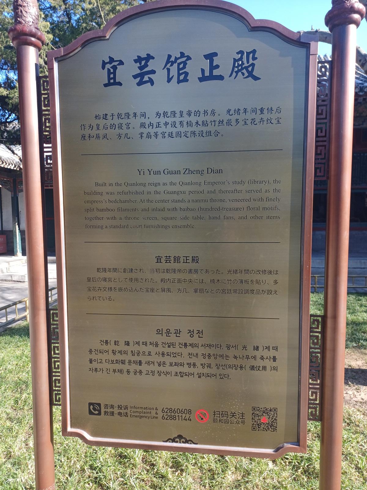 옥란당 북쪽에 위치한 의운관(宜芸馆), 건륭제 시절에는 서고로 이용되었으며, 광서제 시기에는 광서제 황후의 침소로 사용되었던 곳이다.