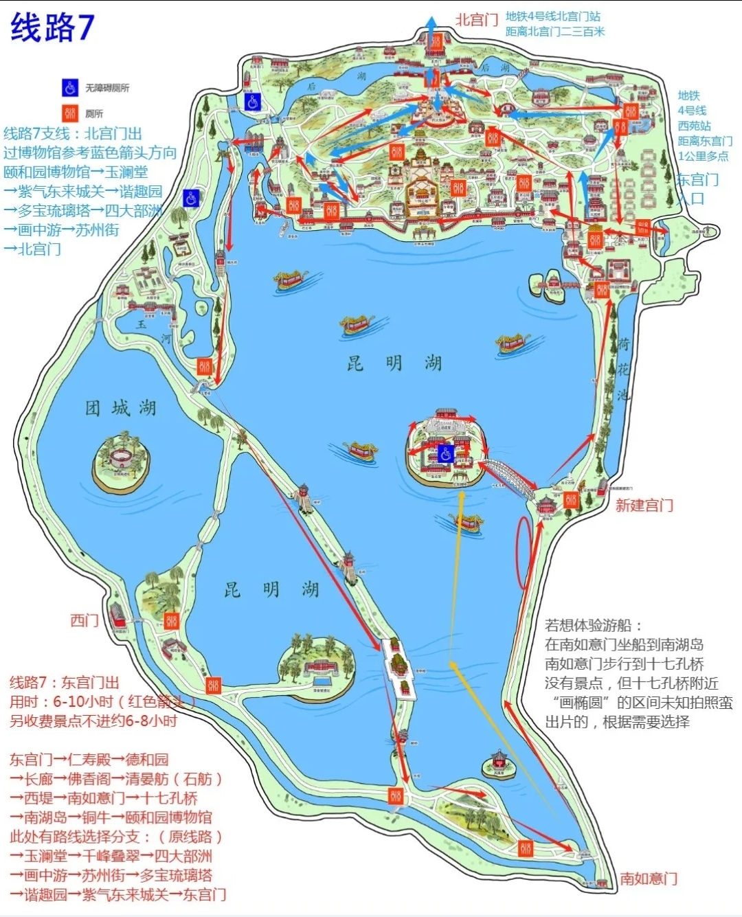 이화원은 워낙 면적이 넓기 때문에, 방문 전에 동선을 꼭 짜야 하는데, 나는 인터넷에 올라온 여러 동선 중 이화원의 모든 관광 포인트를 둘러볼 수 있는 1번 노선을 참조하여 둘러봤다.