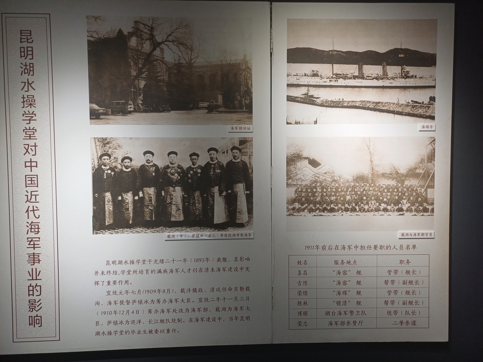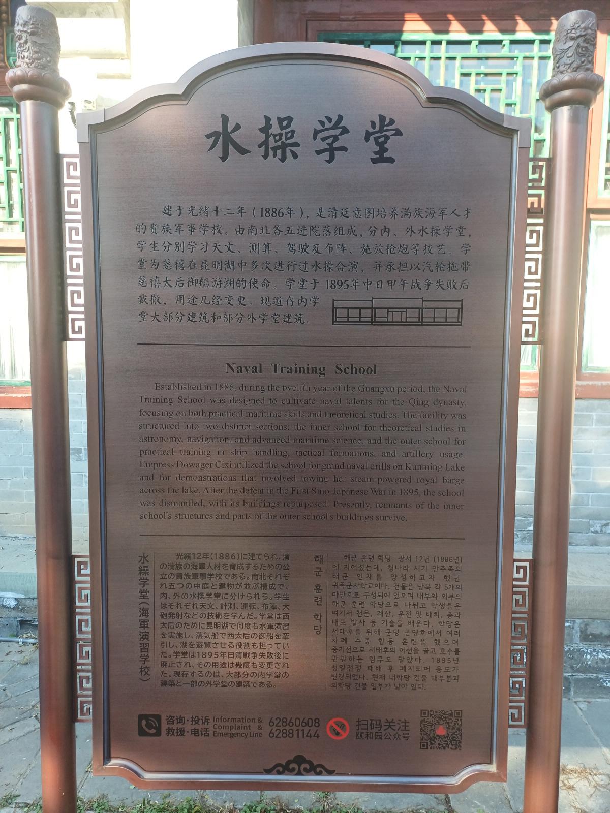 이곳은 만주족 해군 인재를 양성하는 고등 학부가 되어 실제로 곤명호에서 해군훈련을 하기도 했으며 증기선으로 서태후가 탄 배를 끌고 호수를 관광하는 임무도 맡았다고 한다. 문제는 후에 청일전쟁이 일어나자 베이징에 있는 전함을 천진까지 이동시키는 동안