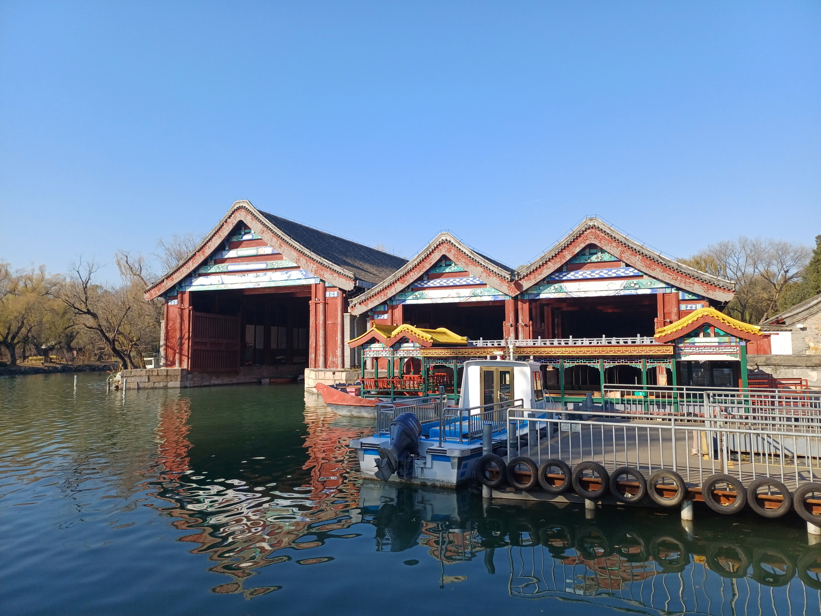 이화원의 대형 선착장 배를 운행하지 않는 비수기라 배들은 모두 선착장에 주차되어 있었다.