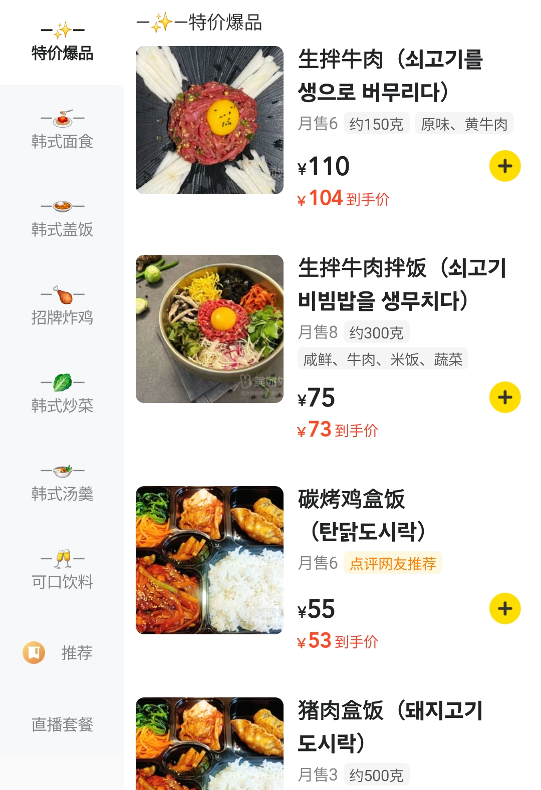 토마토 한국요리 식당은 배달도 전문적으로 하고 있는데, 메이투안(美团) 배달 메뉴에 들어가면 손쉽게 배달 주문해서 즐길 수 있다.