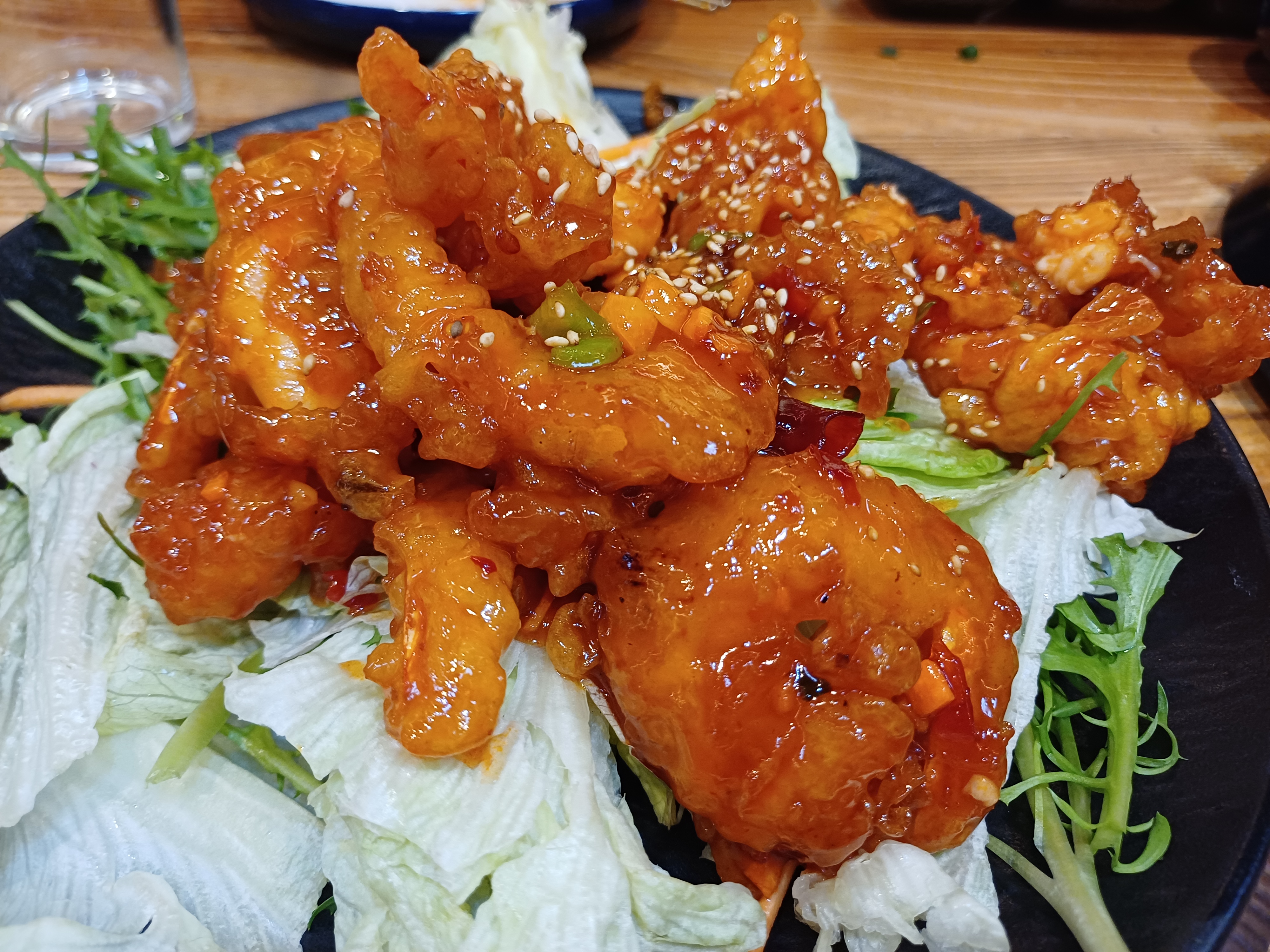 다음 메뉴는 칠리새우, 달콤하면서도 매콤한 소스와 바삭한 튀긴 새우, 시원한 생맥주와 궁합은 최고였다.