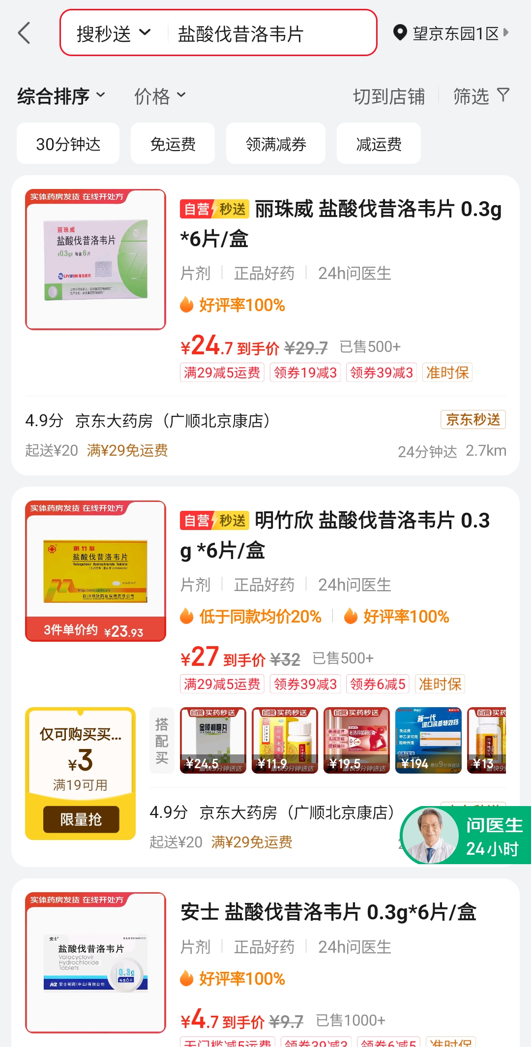 일단 대상포진 치료에 쓰이는 대표적인 항바이러스제인 발라시클로버(Valaciclovir)의 중국어 표현을 알아본 뒤 징동 쇼핑몰에 검색을 해봤다.