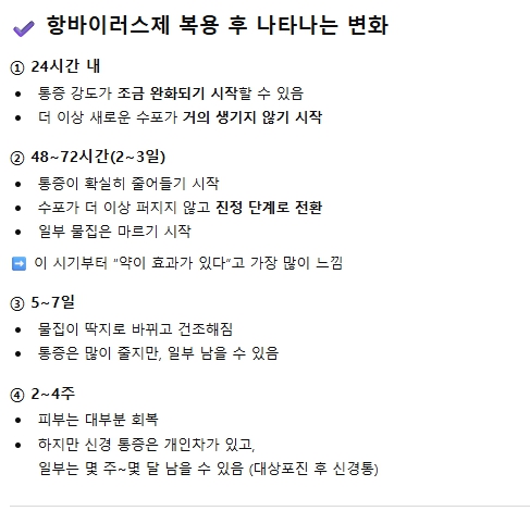 12월 3일에 발진이 시작된 12월 11일까지 총 9일간 항바이러스제를 복용을 했고, 딱지가 생기기 전까 지는 연고도 꾸준히 발라줬다.