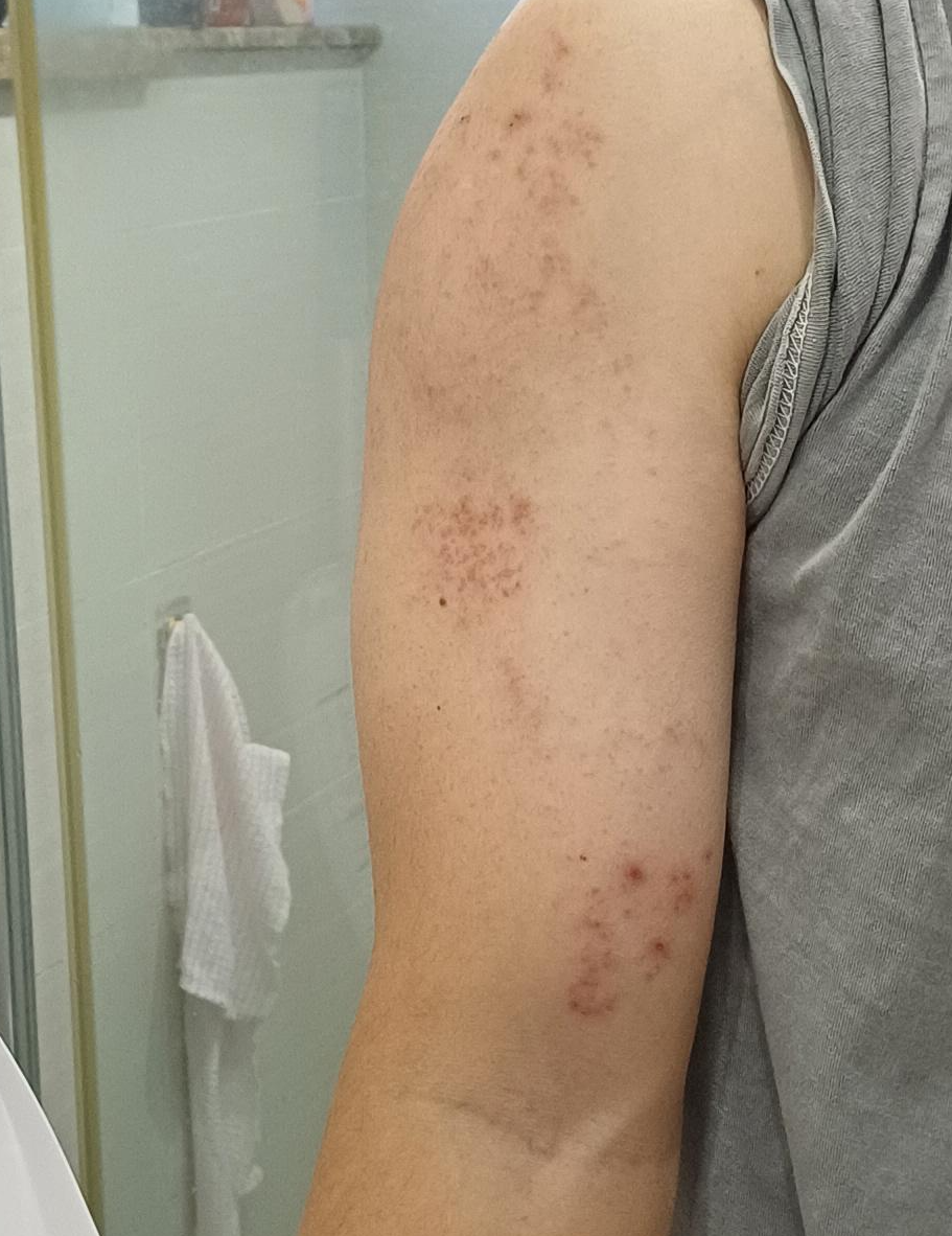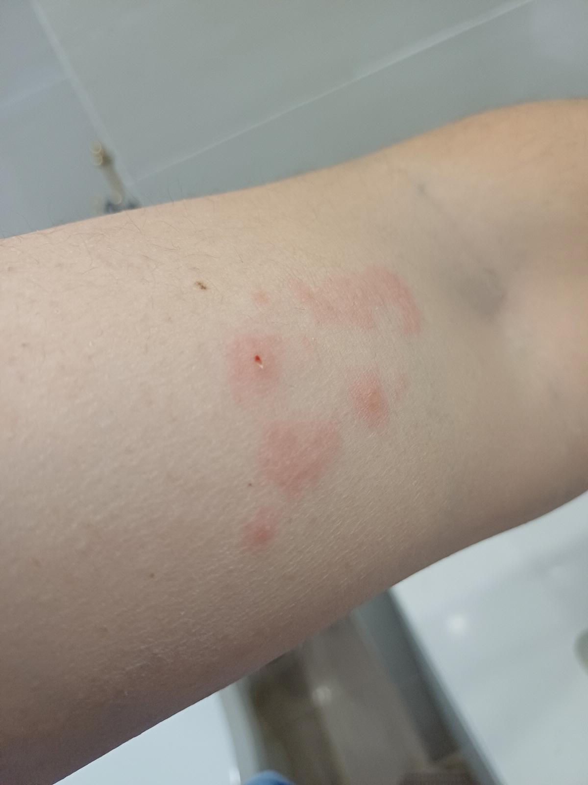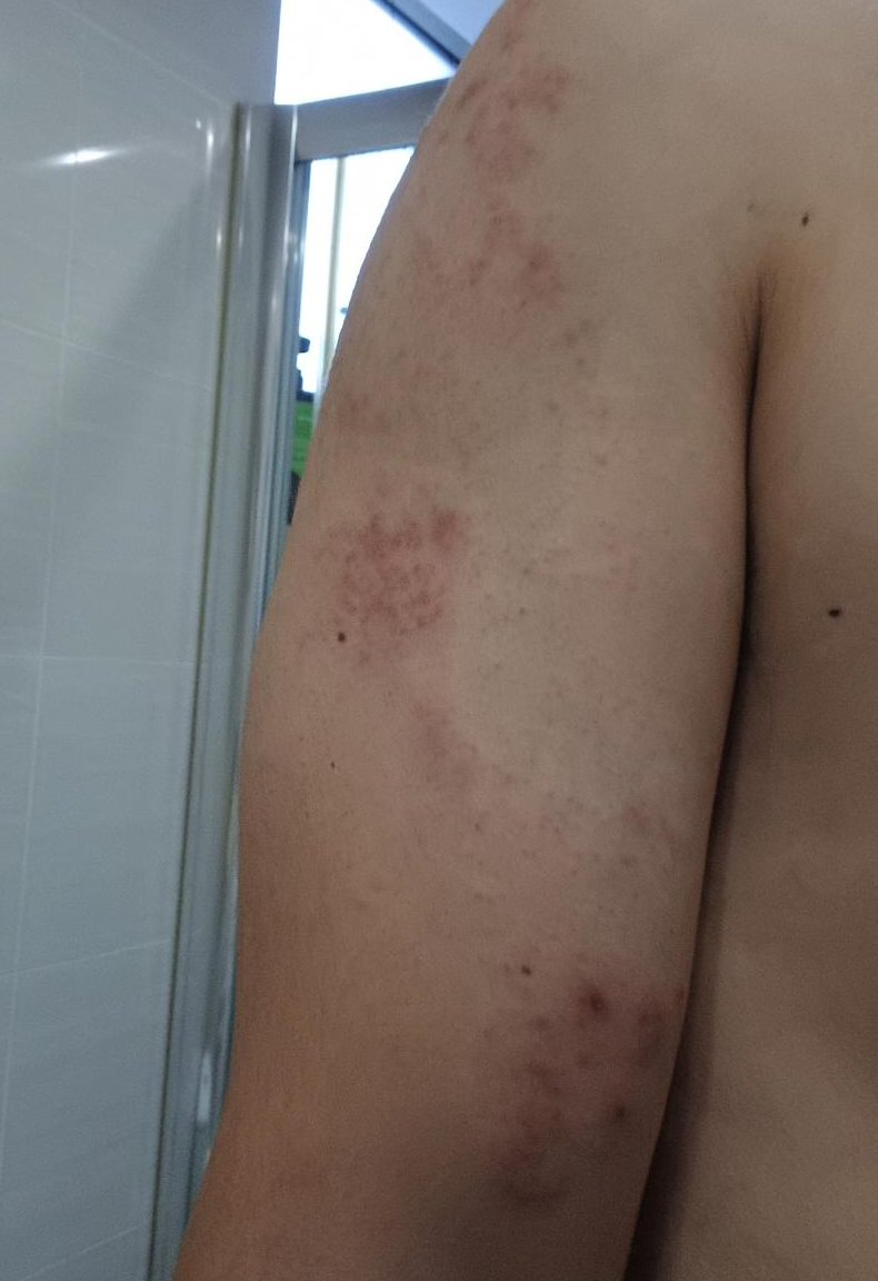팔에 갑자기 뭐가 나기 시작했다. 왼쪽팔 전체에 붉은 반점들이 올라오는데 증상이 심상치가 않았다.