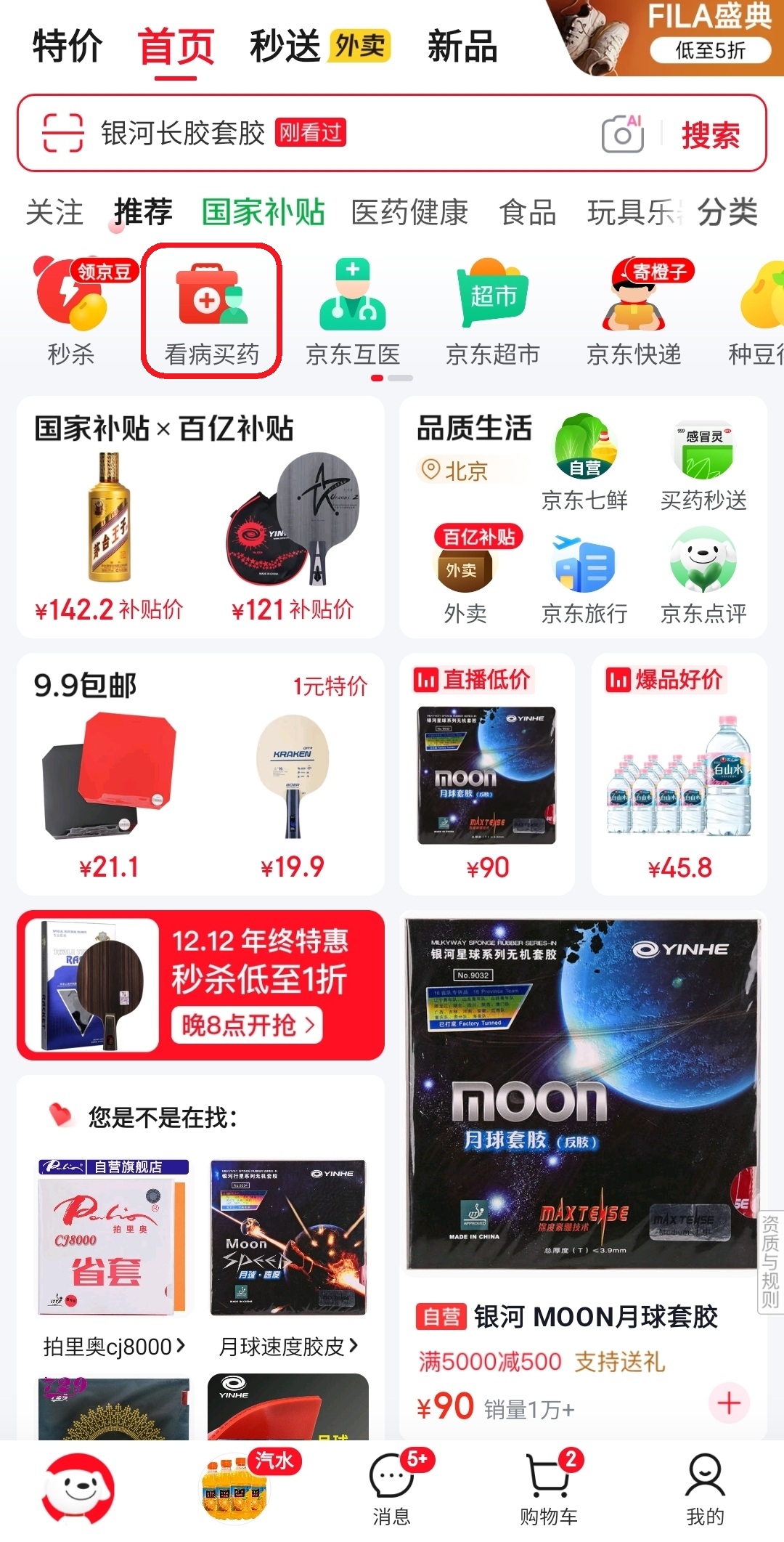 징동(京东) 쇼핑몰에 들어가면 看病买药(진찰하고 약을 사다) 메뉴에 들어가면, 买药秒送(약 구매 신속배달) 메뉴가 있는데 이곳에서 약을 검색해 봤다.