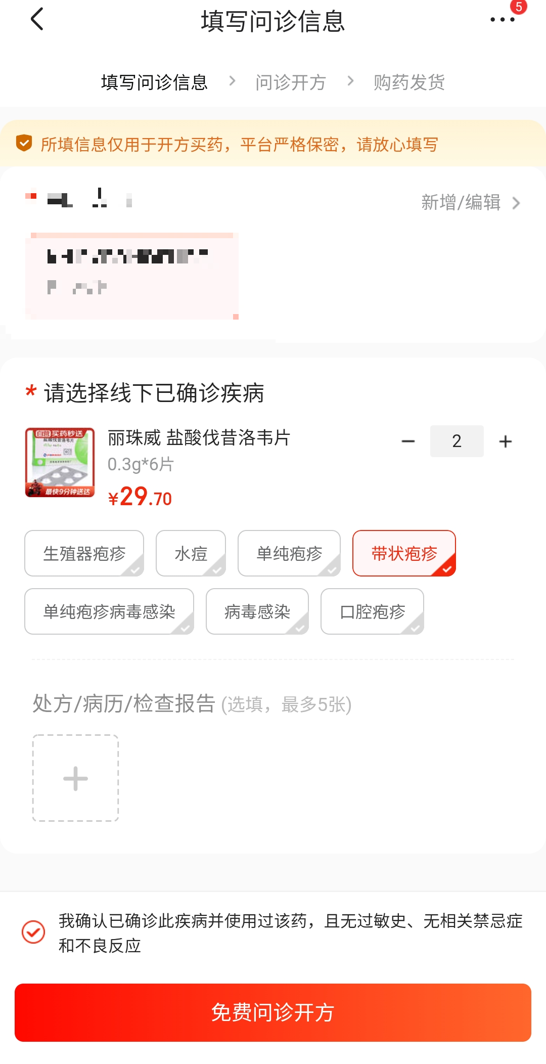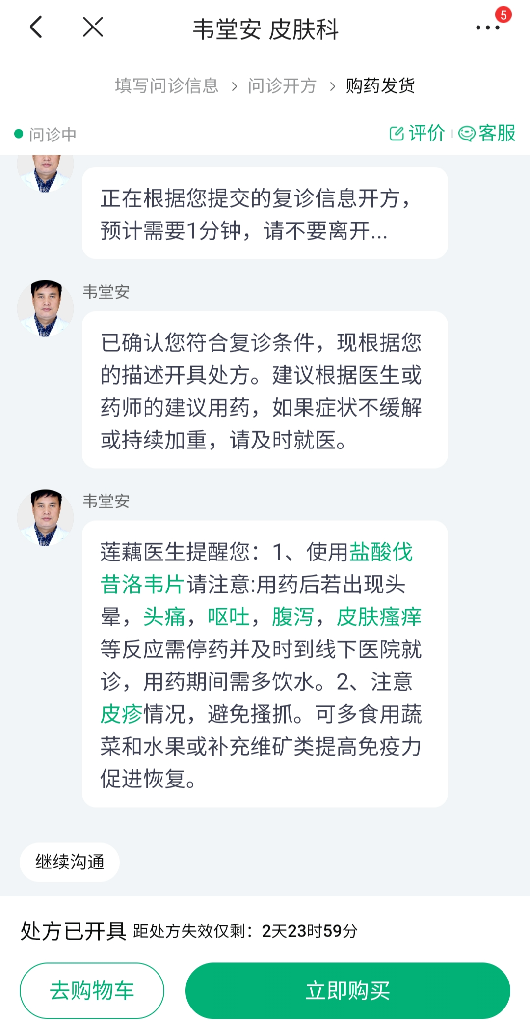 구매할 약을 선택하고, 증상 대상포진(带状疱疹)을 선택하면, 온라인 의사가 복약지도를 해주는데 잘 읽어보고 구매를 하면 된다.
