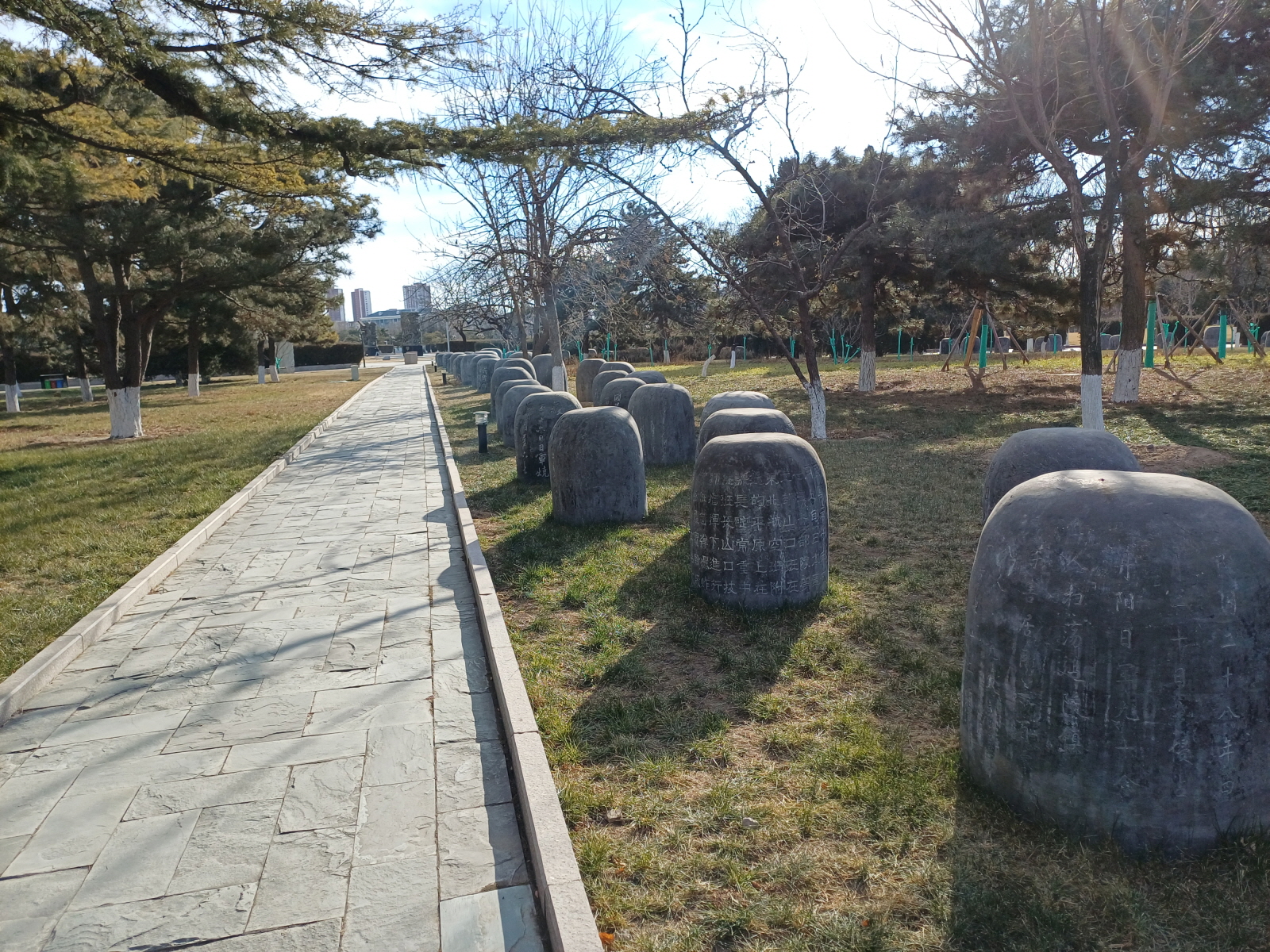 공원 서쪽에는 글자가 새겨져 있는 대형 돌덩어리가 줄지어 자리 잡고 있다.
