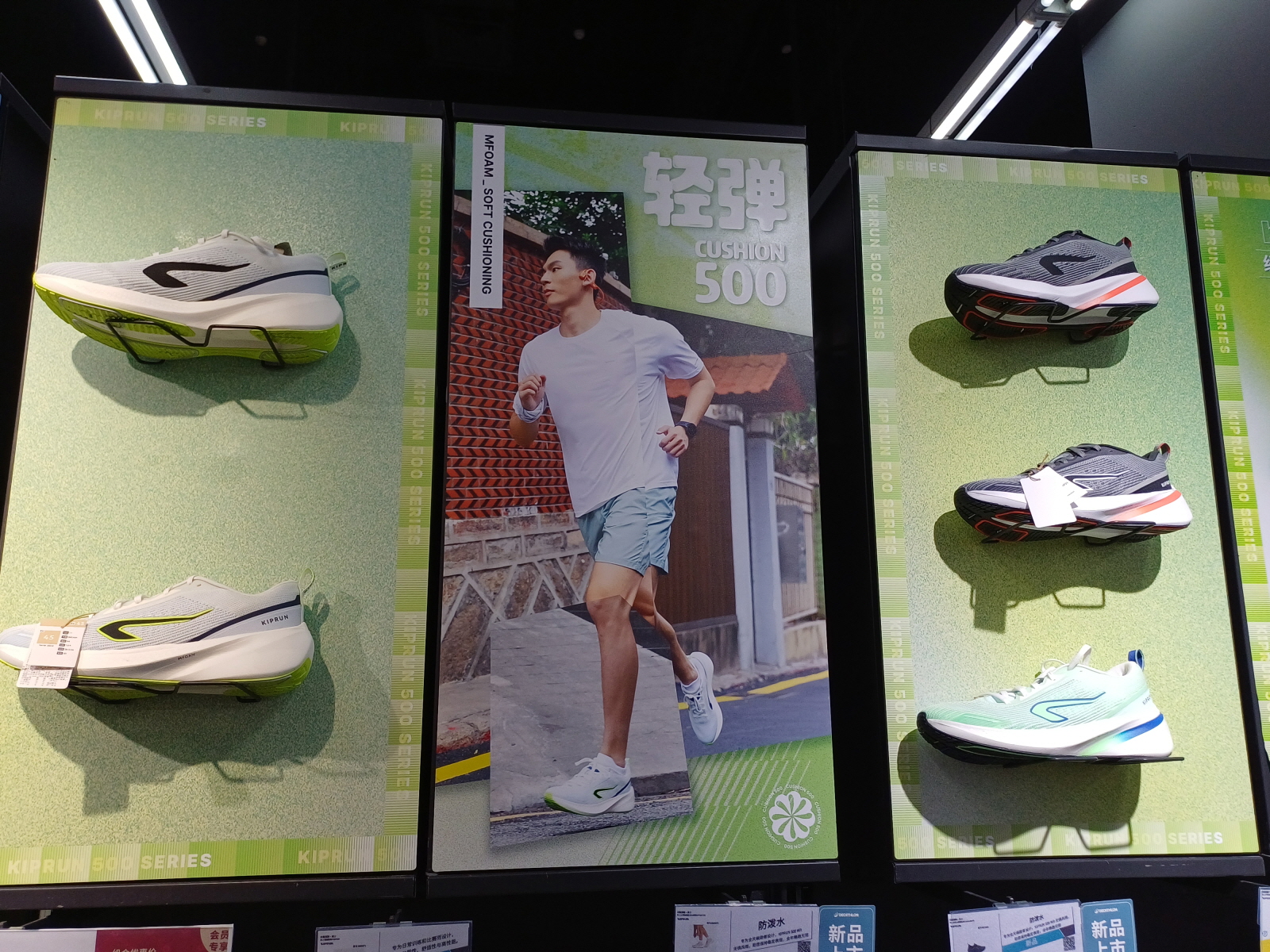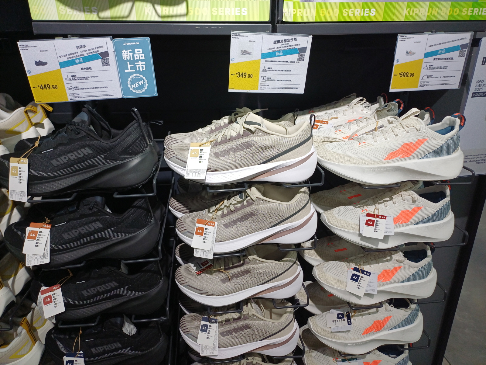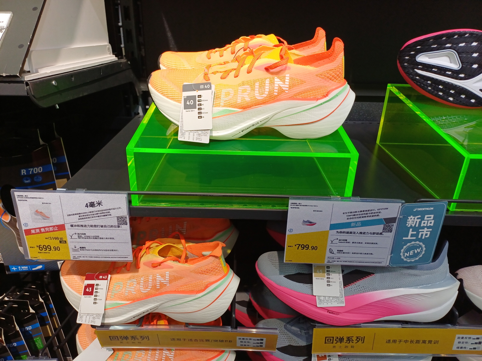 데카트론의 카본화 라인업인 KD900 시리즈가 한쪽에 종류별로 전시가 되어 있었다. 가격대는 4~700위안대 수준이었는데, 다른 브랜드의 카본화 라인업과 비교하면 많이 저렴했지만, 내 러닝 수준과 비교했을 때는 이마저도 과분해 보였다.