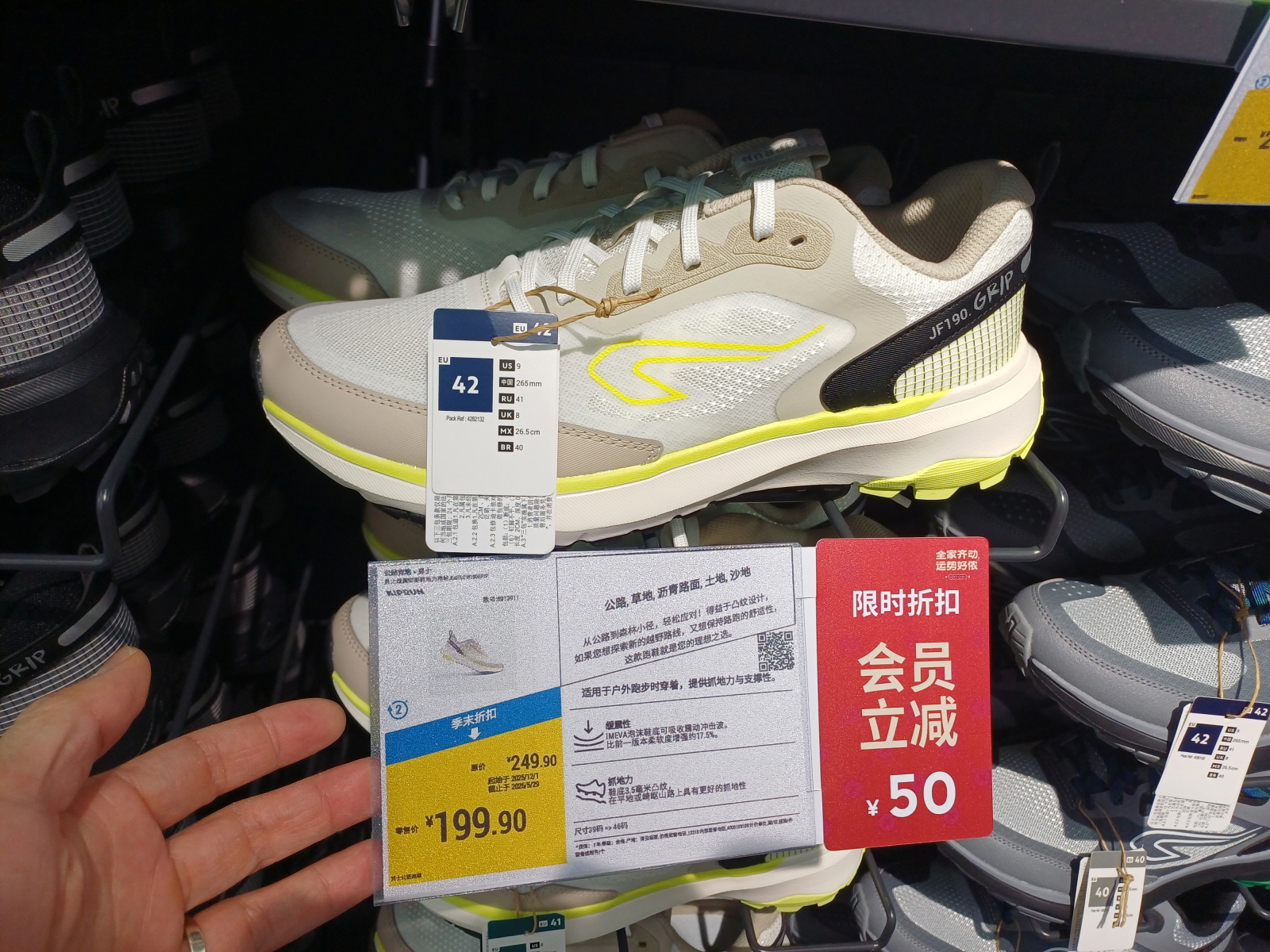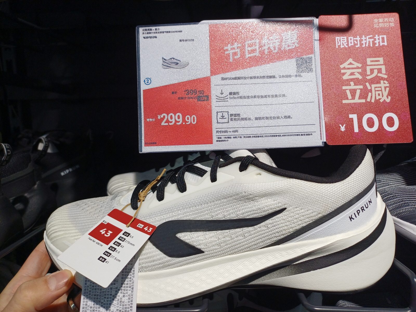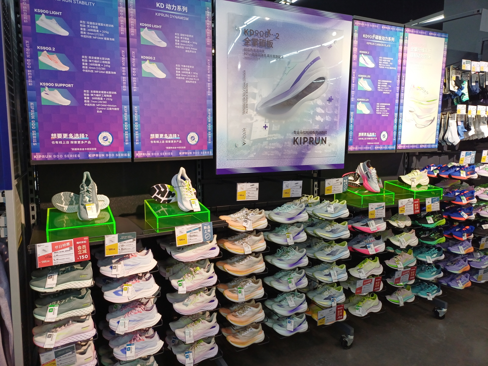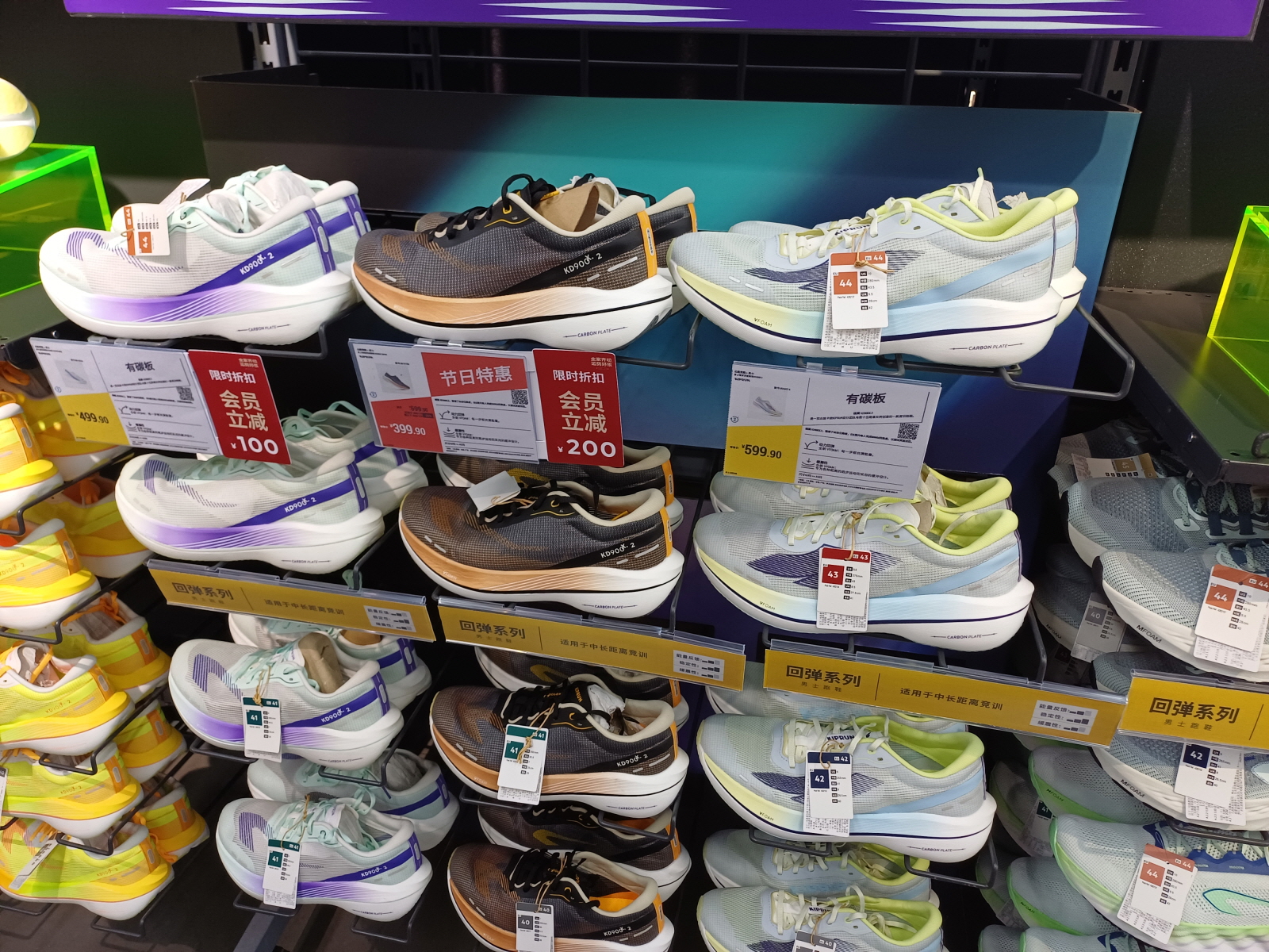 데카트론의 카본화 라인업인 KD900 시리즈가 한쪽에 종류별로 전시가 되어 있었다. 가격대는 4~700위안대 수준이었는데, 다른 브랜드의 카본화 라인업과 비교하면 많이 저렴했지만, 내 러닝 수준과 비교했을 때는 이마저도 과분해 보였다.