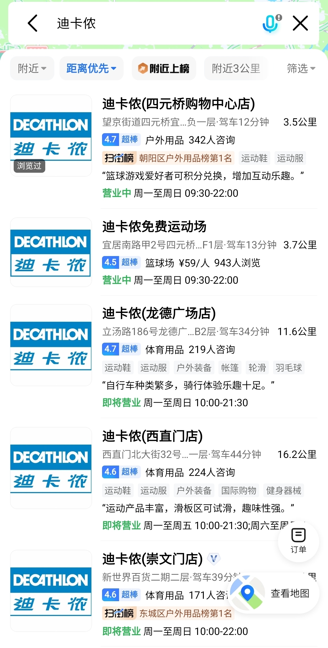 -중문 주소 : 北京市 朝阳区 宜居南路 2号 四元桥购物中心 B1 迪卡侬