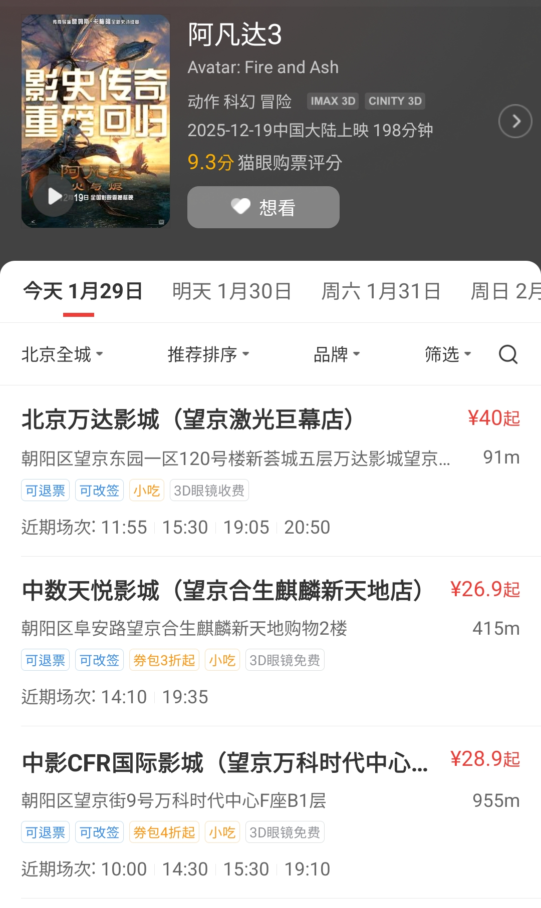 아무튼 어디 영화관에서 볼까 알아보다, 아바타3는 무조건 IMAX 상영관에서 봐야 한다는 결론을 내리고, 베이징에 위치한 IMAX상영관을 찾아봤다.