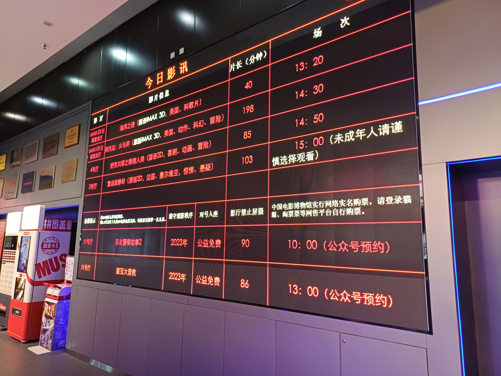 중국영화박물관의 IMAX 스크린 사이즈가 30.17m x 19.50m이라고 나와있는데, 이 사이즈를 한국의 주요 IMAX 상영관 크기와 비교를 해보니, 한국의 용산아이파크몰 스크린 보다 조금 작은 사이즈였다. 아무튼 사이즈 하나는 한국의 탑급과 비슷함!