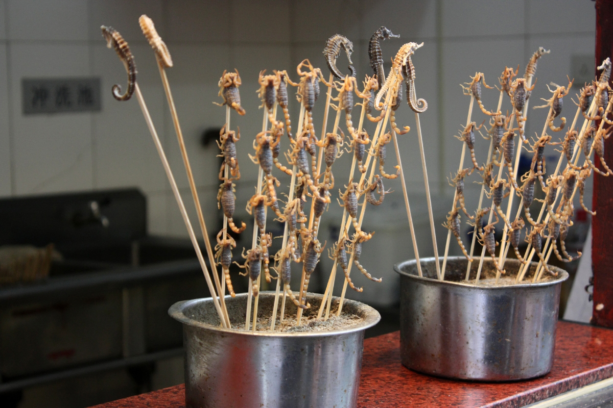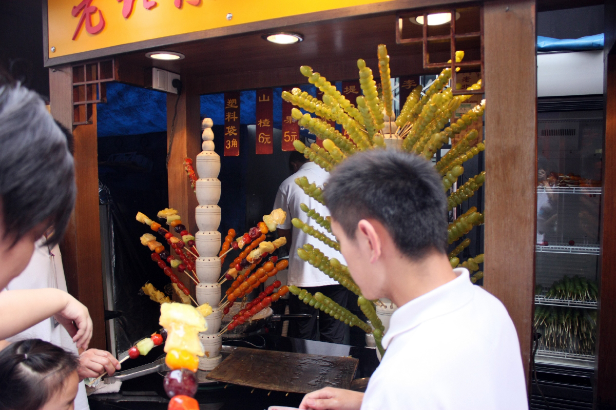 왕푸징을 이야기할 때 빼놓을 수 없는 것이 바로 과거의 왕푸징 꼬치거리다. 한때 골목 안쪽에 형성되었던 노점 거리에는 양꼬치, 전갈·해마·지네 같은 이색 꼬치, 탕후루와 군밤까지 온갖 길거리 음식이 모여 있었다. 이곳은 베이징을 찾은 관광객이라면 반드시 들르는 명소로, ‘중국식 길거리 음식의 상징’처럼 소비되기도 했다. 그러나 위생 문제와 도시 정비 정책으로 노점 꼬치거리는 점차 정리되었고, 지금은 과거의 모습 그대로를 찾기는 어렵다. 대신 일부 전통 간식과 음식 문화는 실내 상가와 정식 매장 형태로 재편되어 명맥을 이어가고 있다.
