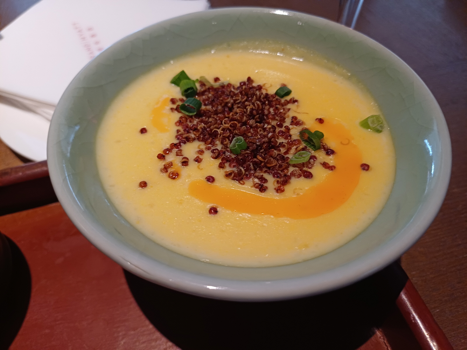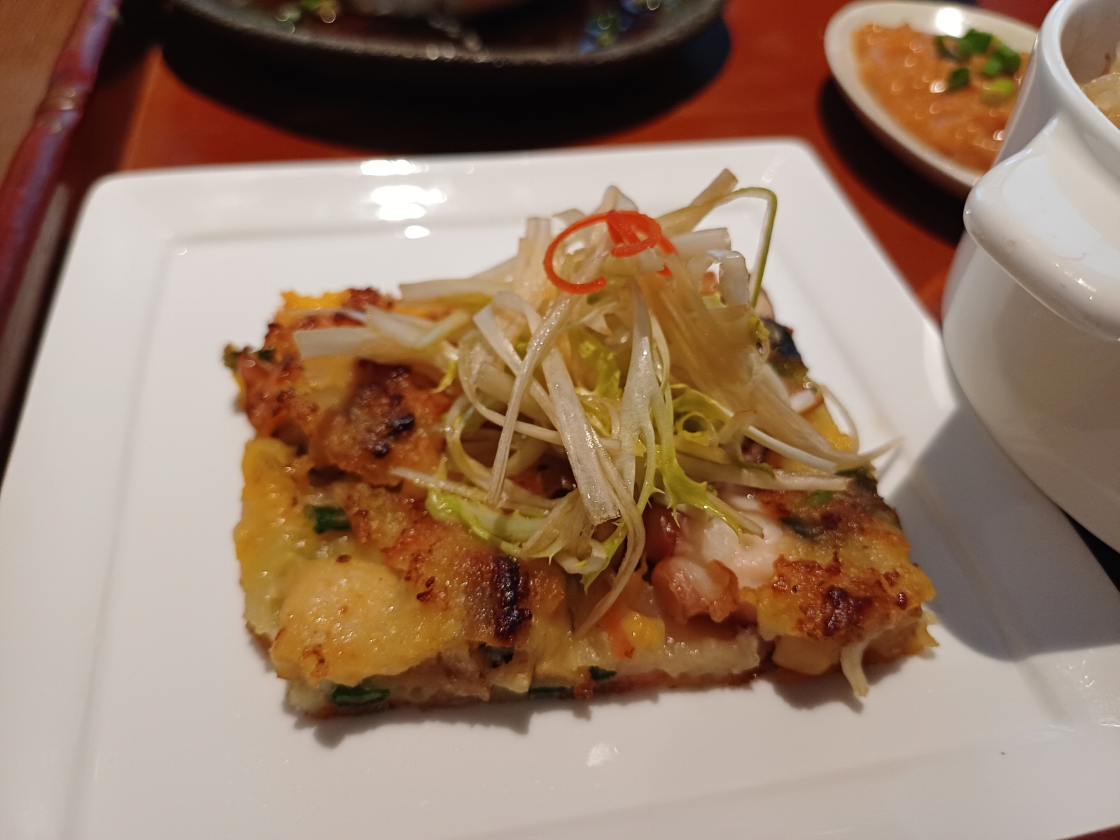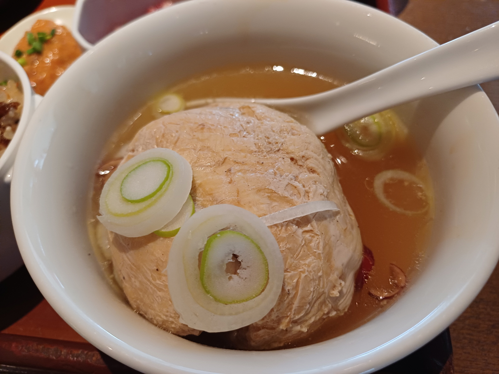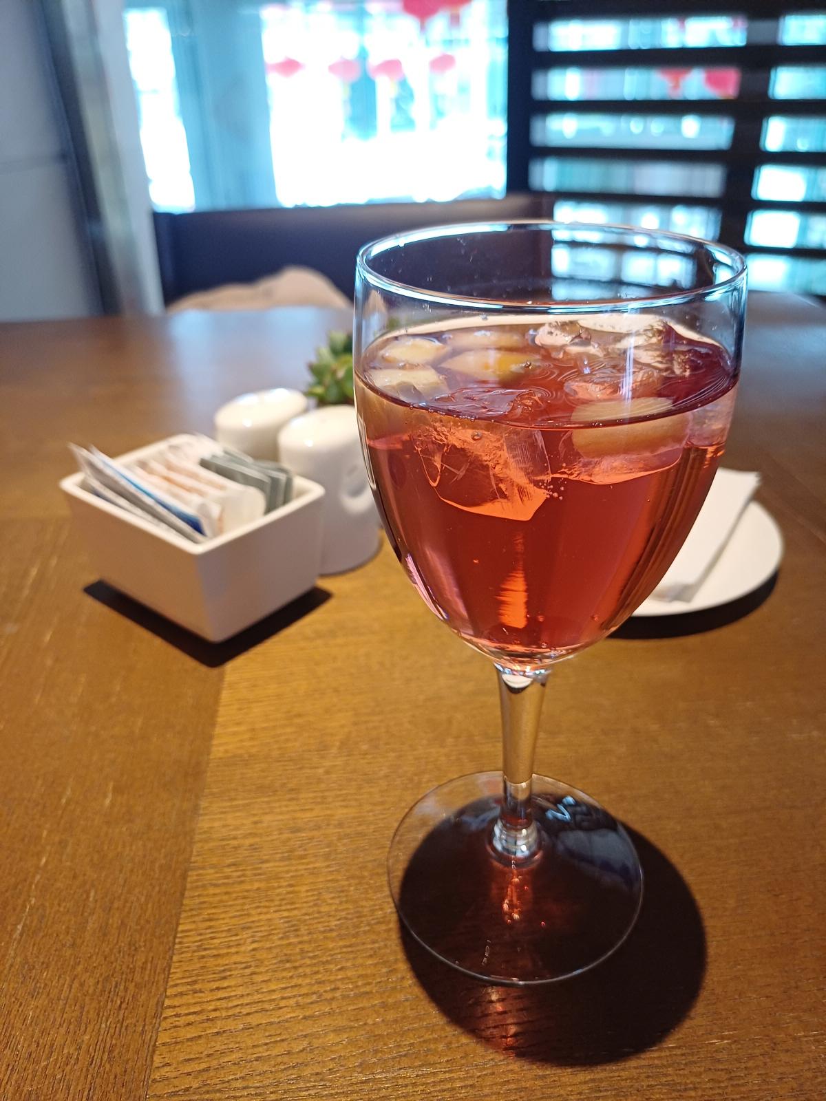호텔 2층의 식당에 올라가서, 한국 특선 메뉴를 먹으러 왔다고 하니 메뉴판을 보여주며 자리로 안내를 해줬다. 주문 후 잠시 기다리니 음료와 함께 점심 메뉴가 나왔다.