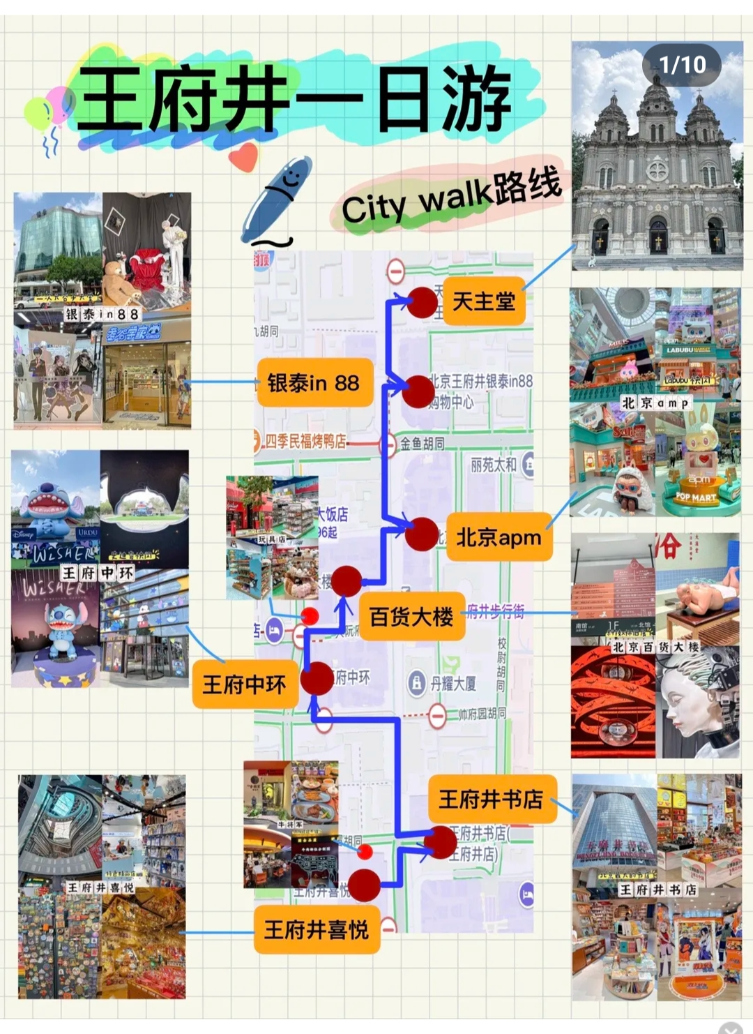 인터넷에 왕푸징에서 관람 동선을 찾아보니 남쪽에서 출발하여 여러 쇼핑몰들을 거치며 북쪽으로 올라갔다가, 마지막 천주교 성당에서 마무리되는 노선이 있어, 이 노선대로 움직여보기로 했다.