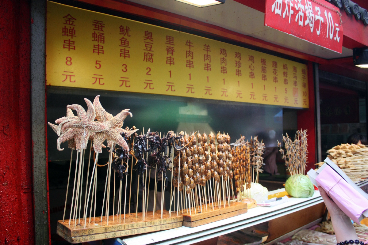 과거에는 왕푸징에 각종 곤충 꼬치를 파는 꼬치거리를 구경하러 가는 관광코스였는데, 꼬치거리는 2016~17년 베이징 시 노점상 정리 정책으로 인해 이제는 찾아볼 수 없게 되었다고 한다.