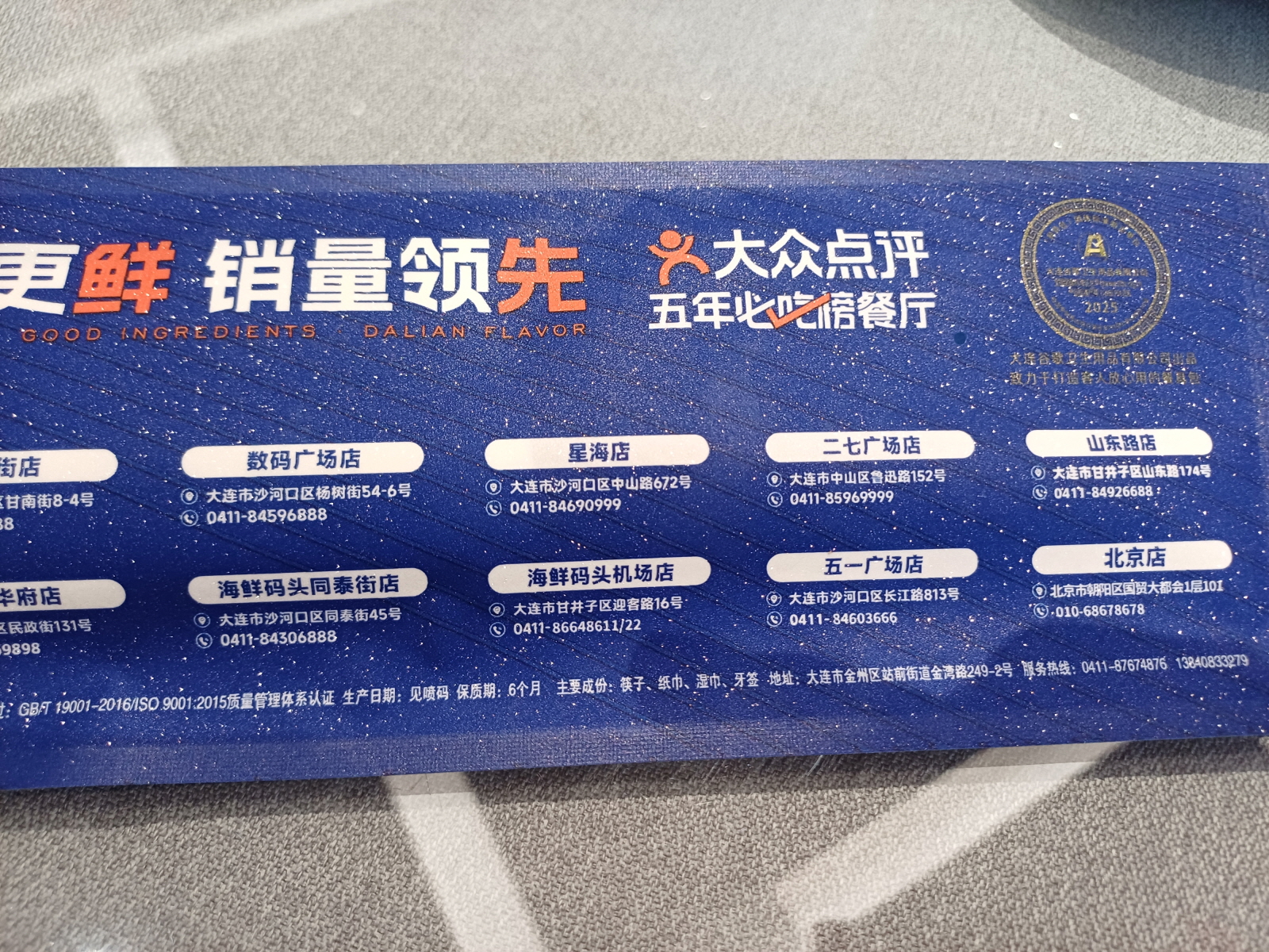일회용 식기 포장을 살펴보니, 식당은 대련에 본거지를 두고 있으며, 베이징에는 이곳 한 곳만 매장을 운영 중이었다.