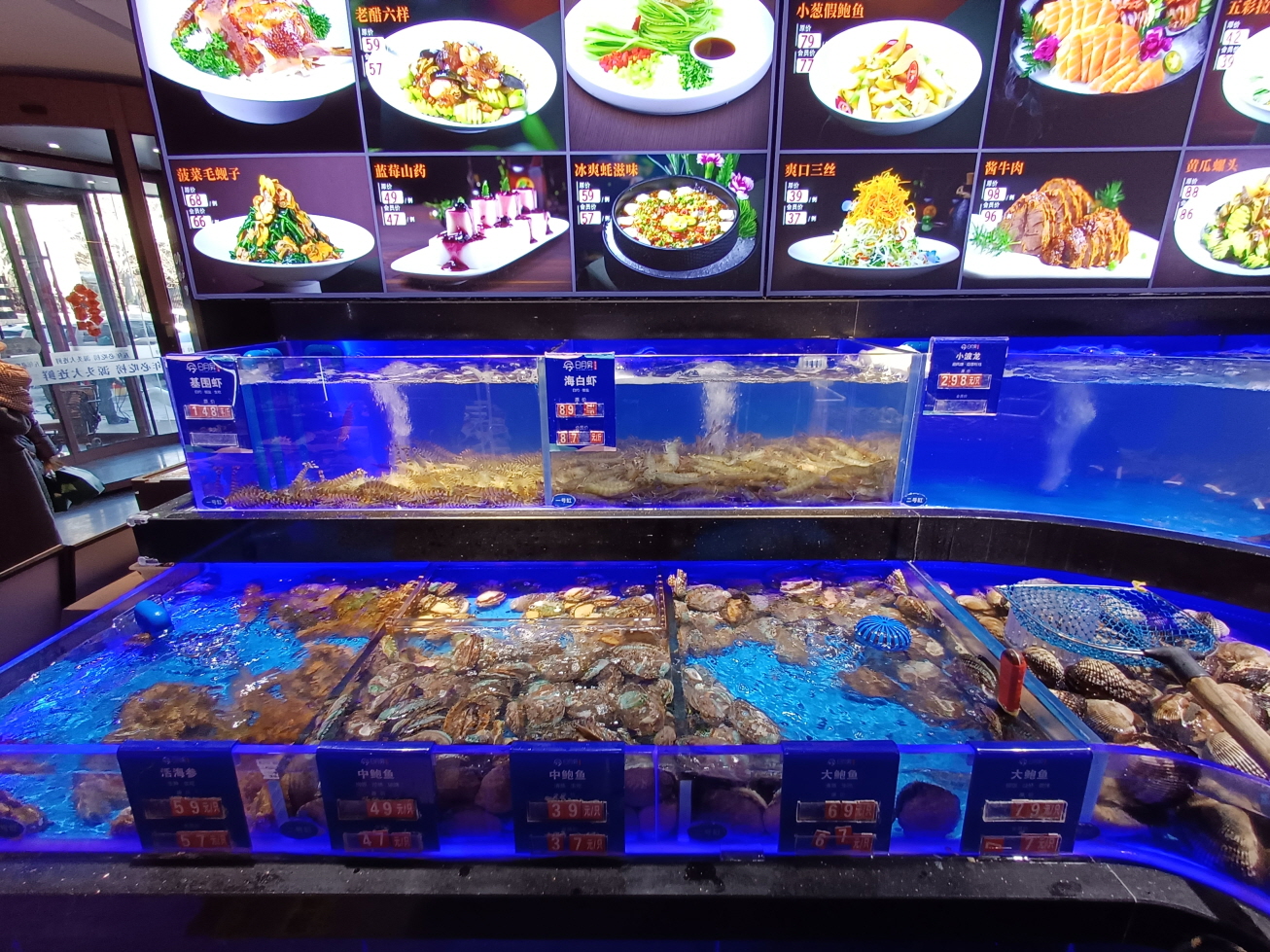 식당 1층 로비에 해산물이 전시되어 있는데, 이곳에서 직접 보고 주문을 하는 시스템이다. 딱 봐도 해산물이 모두 신선했다.