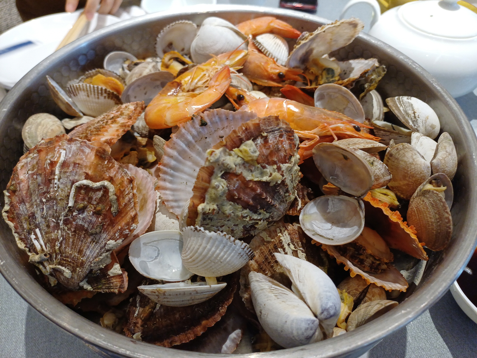 가장 먼저 나온 해산물찜, 새우와 다양한 조개들이 포함되어 있는데, 개인적으로 새우와 꼬막 조개는 먹을만했는데, 정체를 알 수 없는 가리비 같은 조개는 보통이었다.