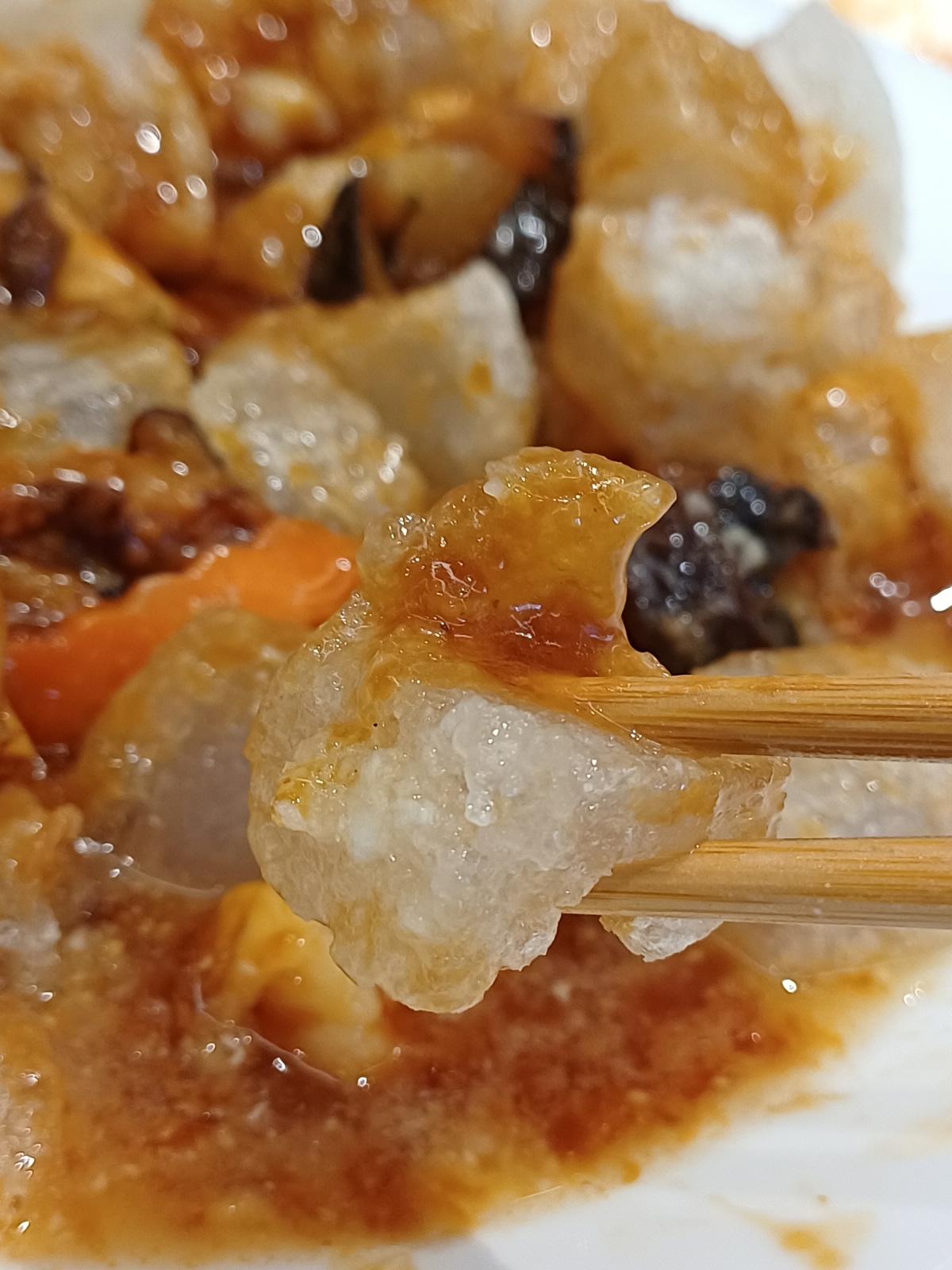해삼과 오징어가 들어간 해산물요리인데, 전분으로 만든 묵 같은 먼쯔(焖子)가 들어가 있는 요리다. 말랑말랑하고 쫀득한 먼쯔의 식감이 인상적이었다.