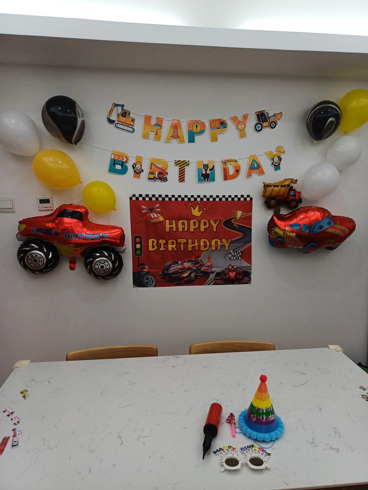 자동차 박물관에서 신나게 놀고 온 후, 자동차 콘셉트로 생일파티를 해줬다.