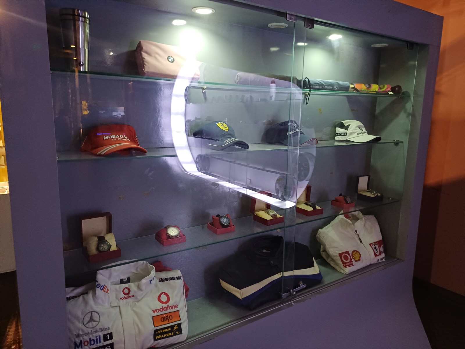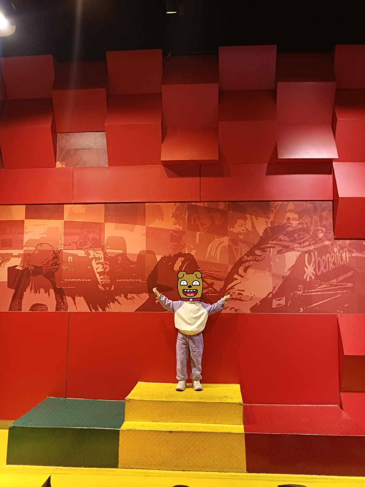 자동차 레이싱에 관한 전시와 레이싱카들도 전시가 되어 있다. 포디움에 올라서 촬영도 해봤다.