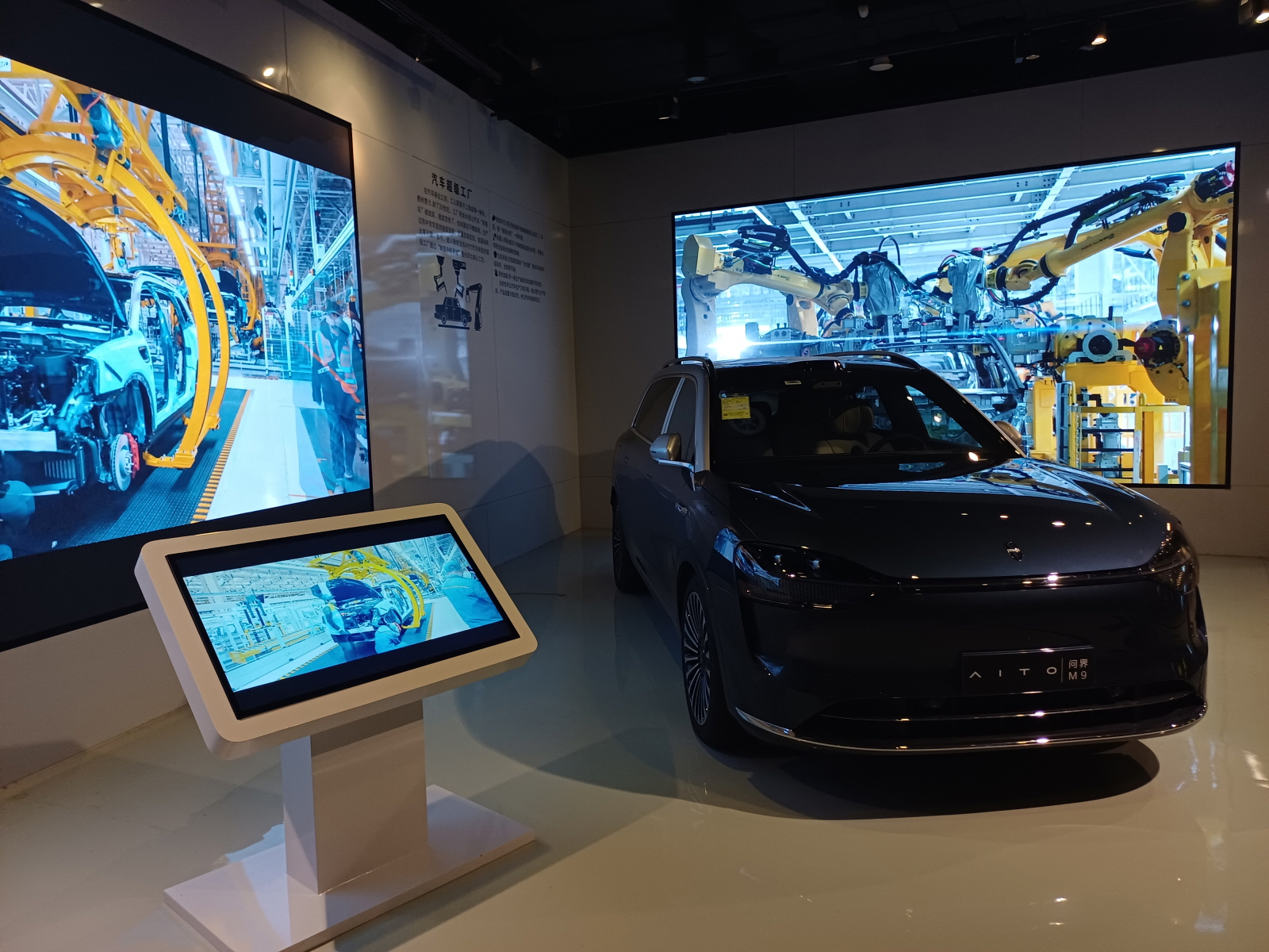 자동차 산업 현장을 시찰하는 주은래와 등소평의 사진, 터치스크린으로도 책장을 넘기듯 발전 역사를 볼 수 있었다.
