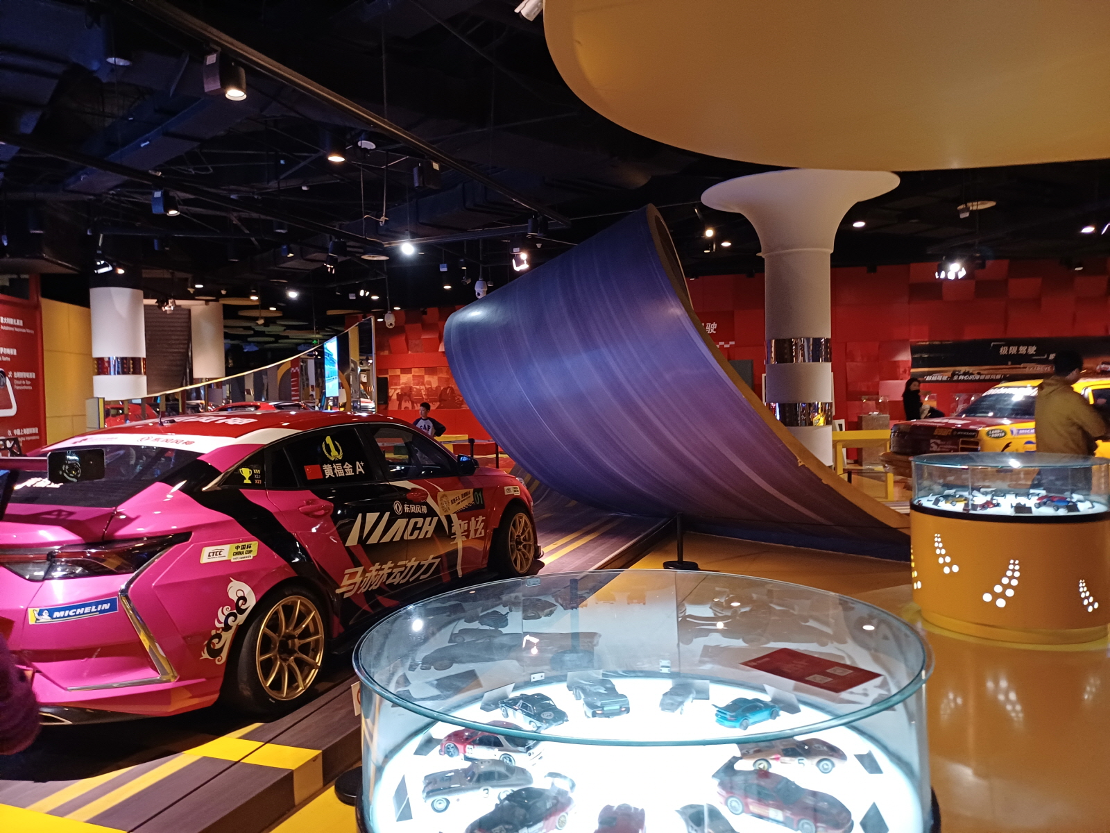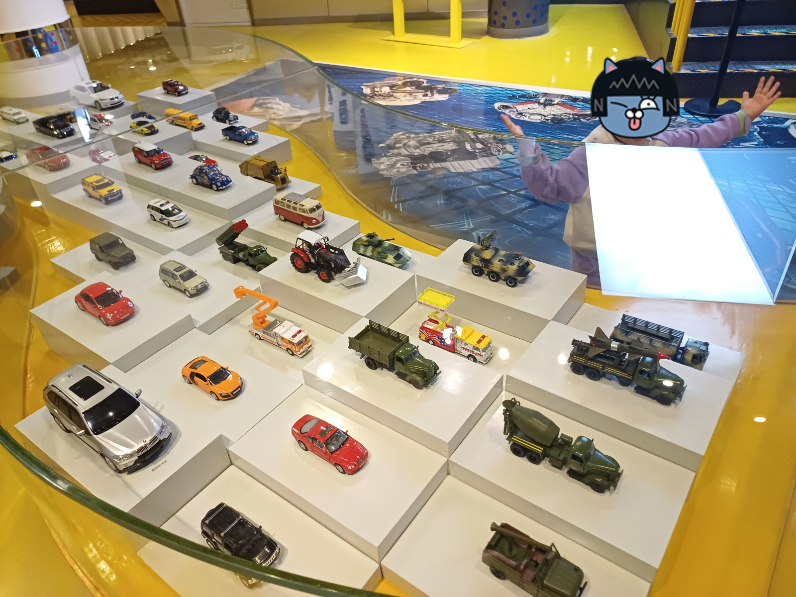 박물관 입구로 들어가면 1층 로비가 나오는데, 이곳에 주차타워 같은 곳에 자동차들이 전시되어 있고, 그 주변에 다양한 자동차 체험 코너가 마련되어 있었다. 당연히 유료 서비스라 빠르게 지나갔다.