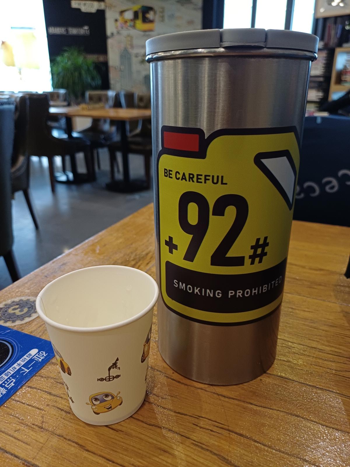 사방이 모두 자동차로 도배되어 있고, 물통도 연료통 콘셉트이고, 종이컵에도 자동차가 그려져 있다.
