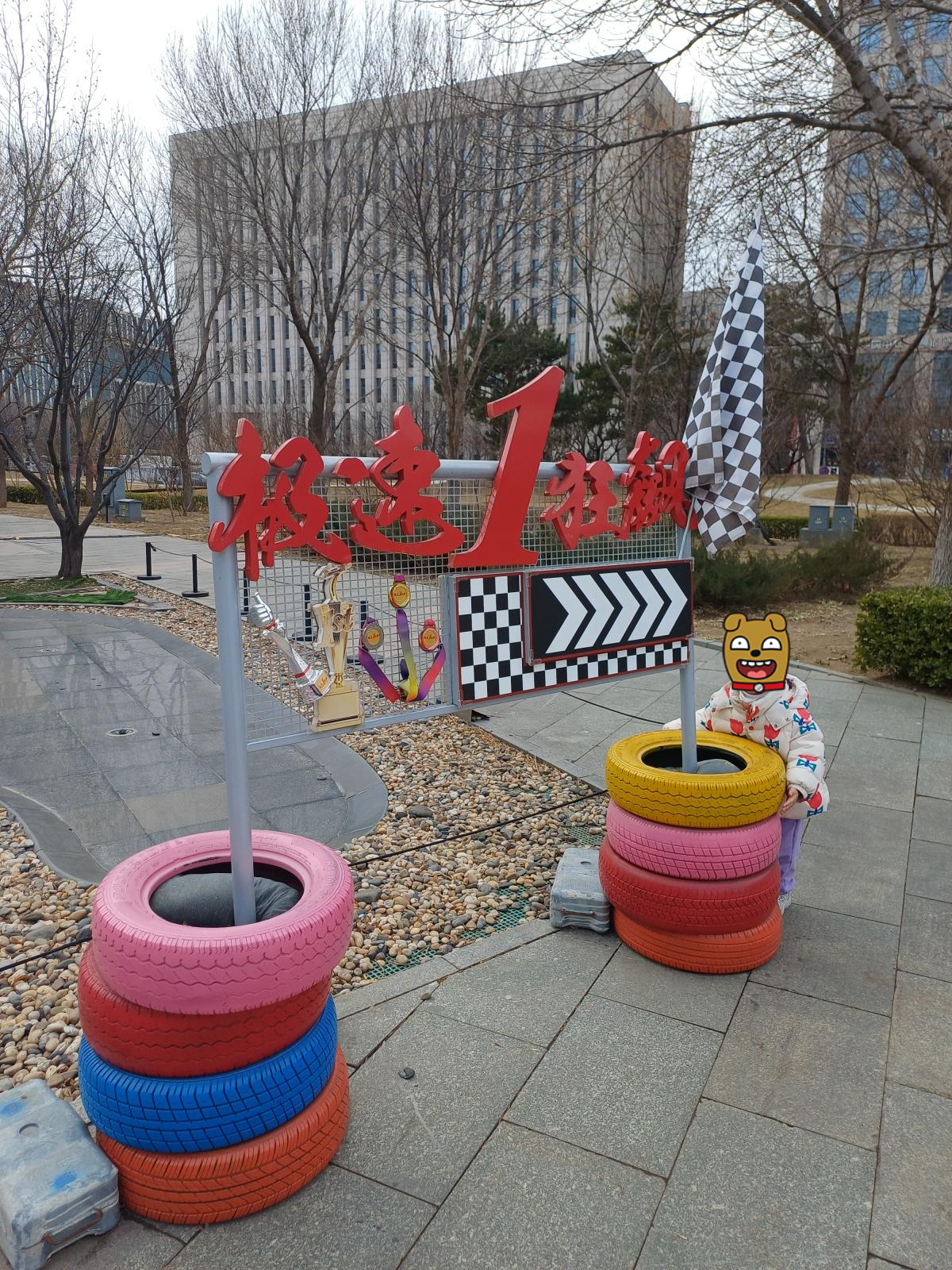박물관 밖에 나오니 무슨 기차도 있고, 운영은 하고 있지 않았지만 작은 레이싱 코너도 있었다. 알록달록 타이어가 곳곳에 있었는데 아이가 색색 타이어가 너무 신기한지 끌어안고 사진도 찍었다.