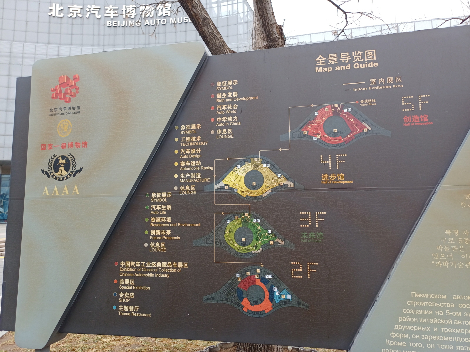 박물관 2층은 중국자동차 산업 관련 전시와 식당이 위치하고 있고, 3층은 미래관, 4층은 진보관, 5층은 창조관이라는 이름으로 전시가 구성되어 있었다.