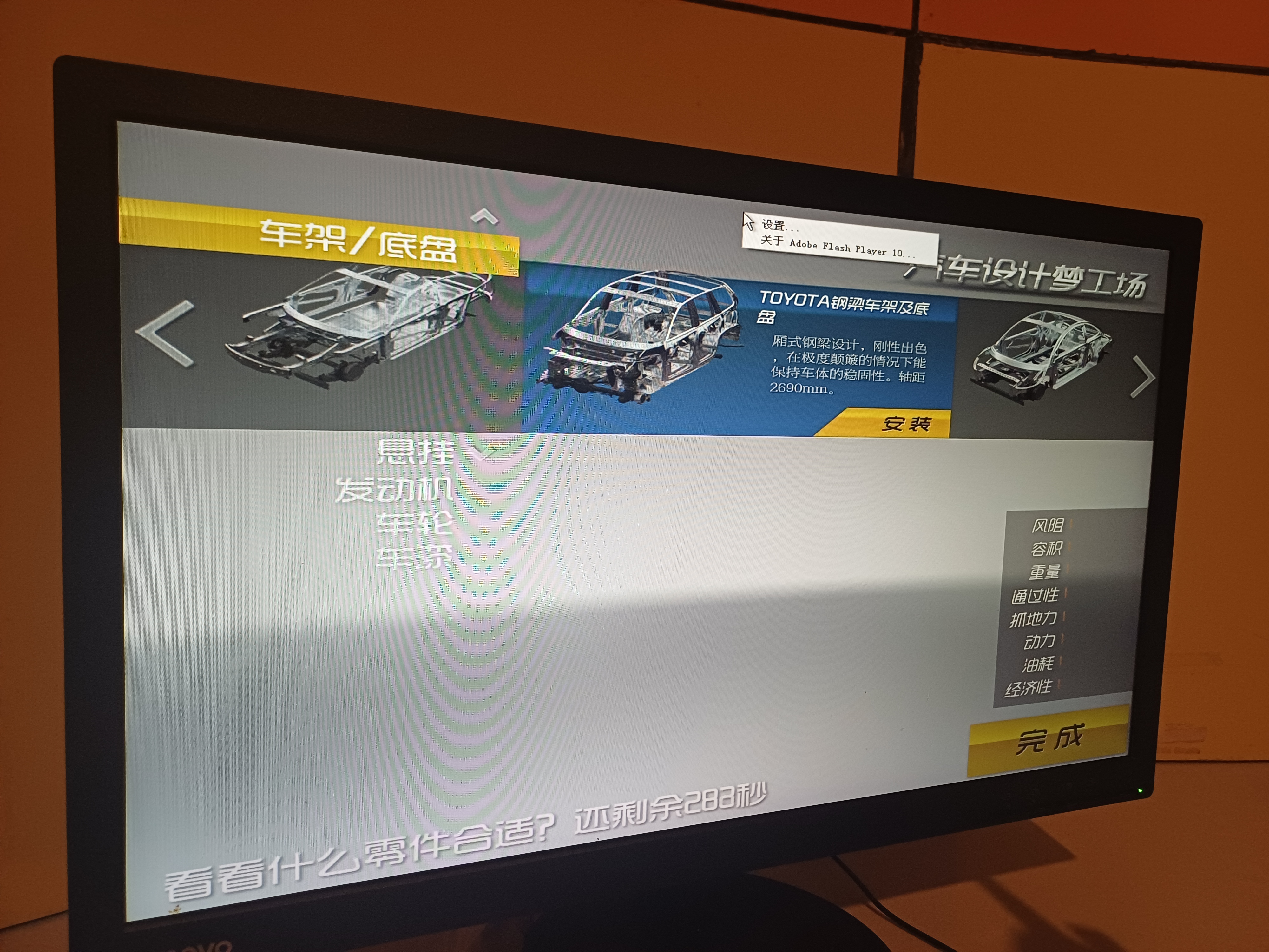 자동차를 직접 디자인해 볼 수 있는 코너가 마련되어 있었는데, 자동차 스펙을 알맞게 조합하면 고득점이 나오는 방식이었다.