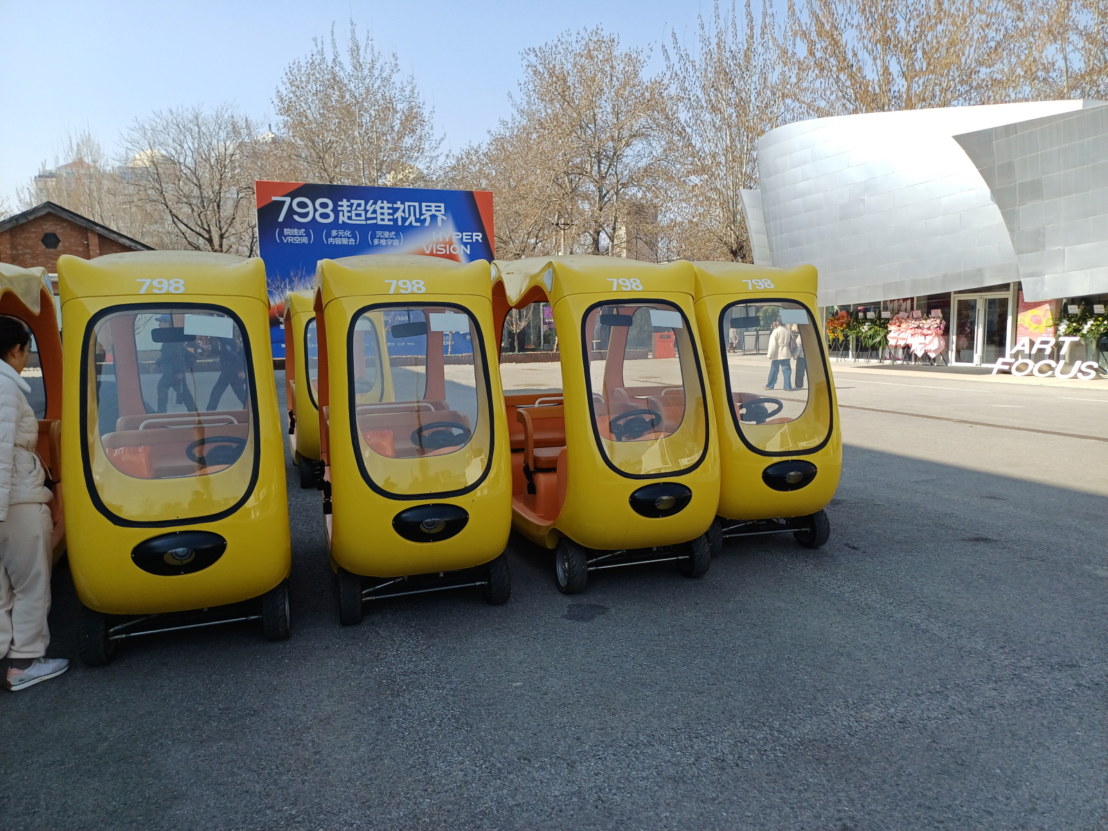 798 예술구에 새롭게 생긴 전기 자동차, 아이가 자동차를 너무 좋아해서 30분에 80위안이라는 거금의 이용료에도 불구하고 이용을 했다.