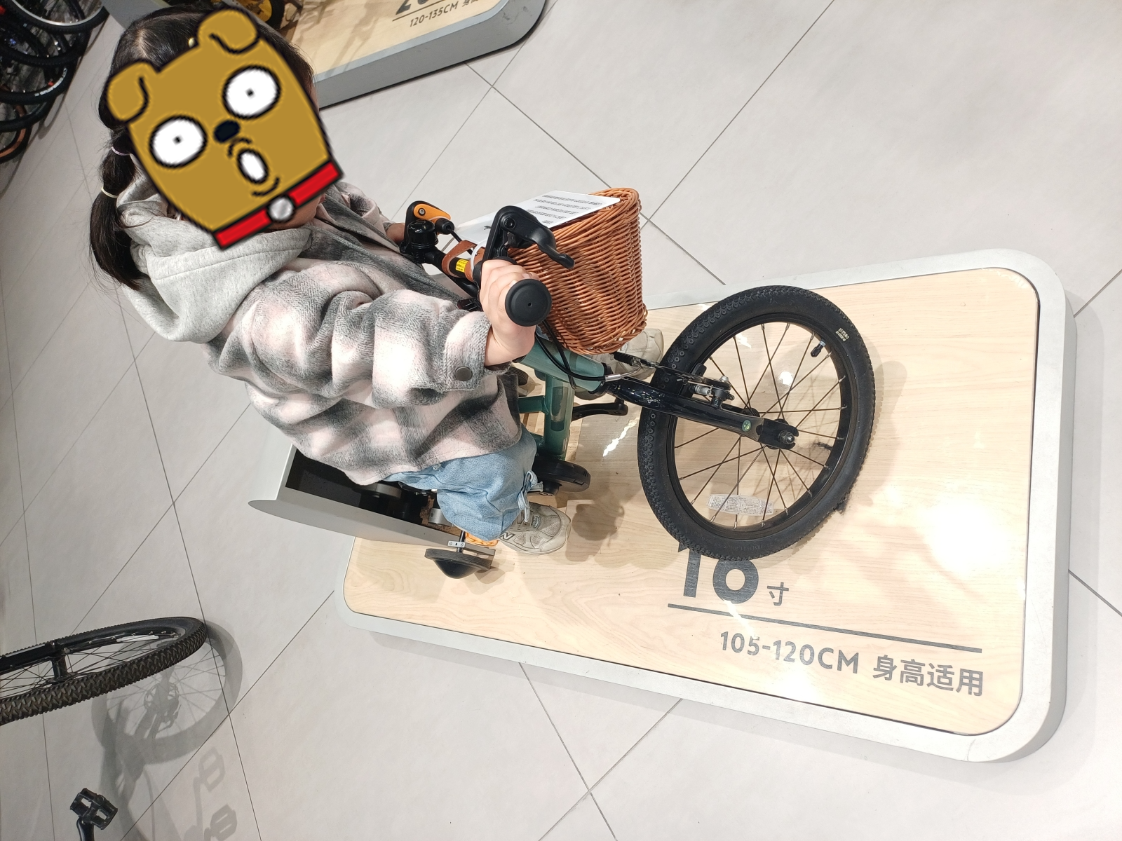 그래서 자전거를 둘러보기 위해 데카트론에 가봤는데, 마침 자전거 사이즈별로 타볼 수 있어서 적정 자전거 사이즈를 확인해 볼 수 있었다. 딸아이에게 적합한 자전거 사이즈는 16인치였으며, 보호 핼맷도 직접 써보고 사이즈를 체크했다.