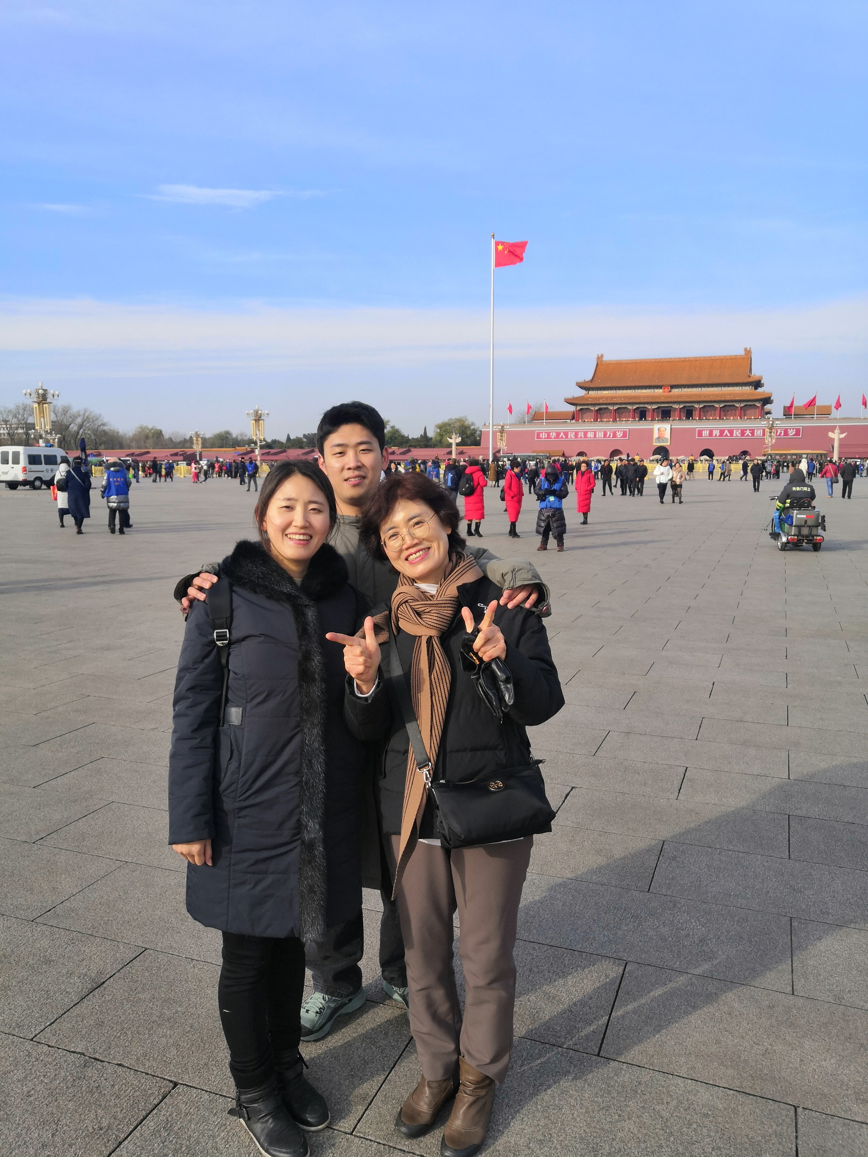 마오쩌둥 초상화가 걸려있는 천안문 광장 앞에서 기념사진을 뙇! 박아주고