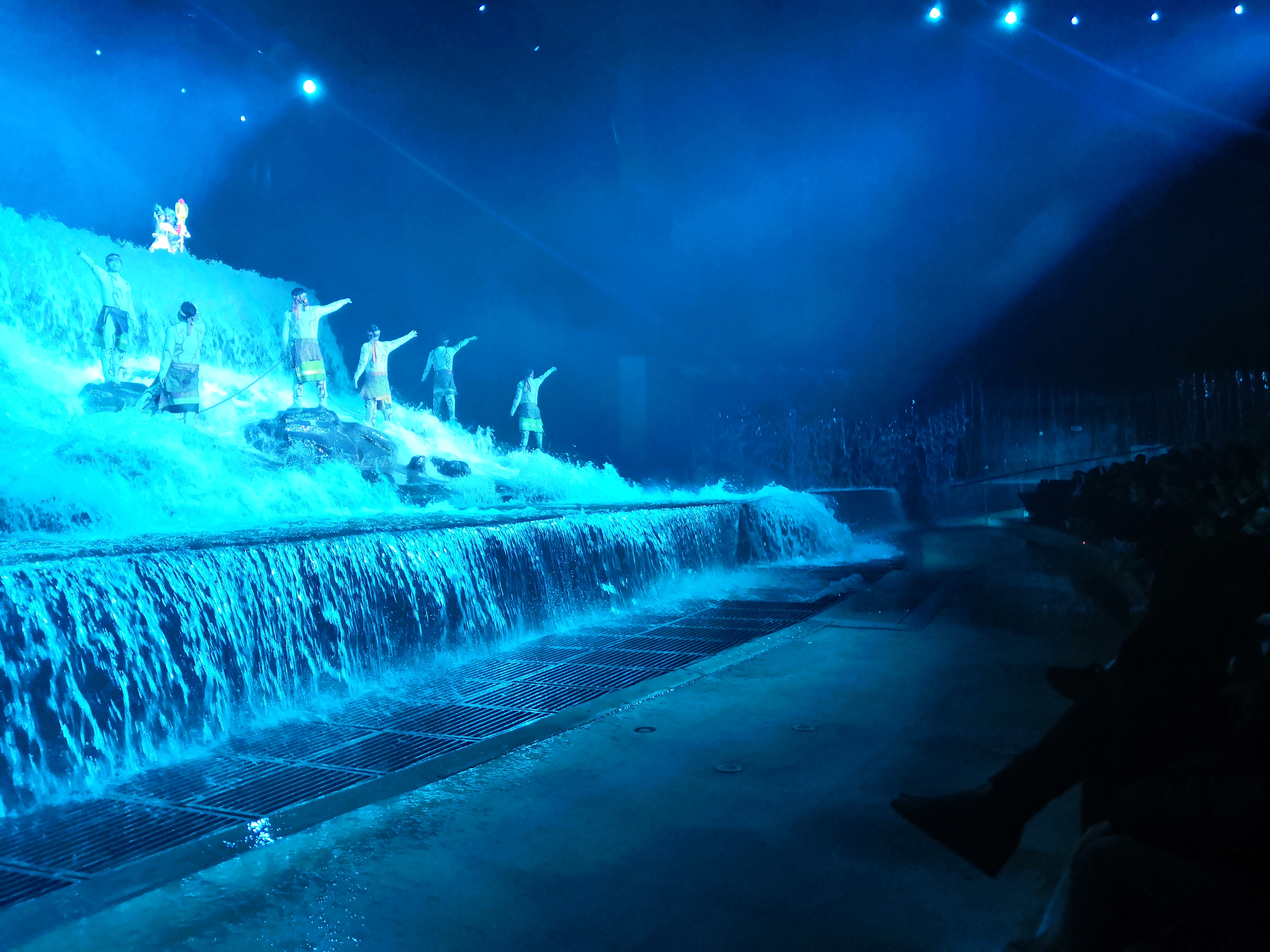 어떻게 무대 장비를 저렇게 설치했는지 모르겠지만, 저렇게 폭포처럼 물들이 쏟아지는 연출은 정말 대륙의 스케일을 몸소 체험할 수 있었습니다. 5분동안 약 80톤이 물이 쏟아진다고 합니다.